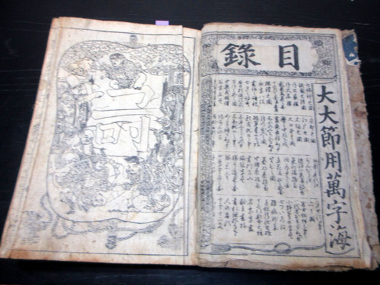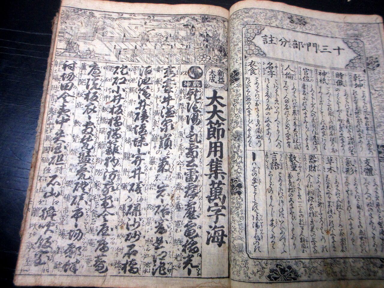 和本江戸宝暦7年(1757)事典辞書「大大節用万字海」全1冊/玉葉軒七友/古書古文書/木版摺り/古地図/武具/武鑑