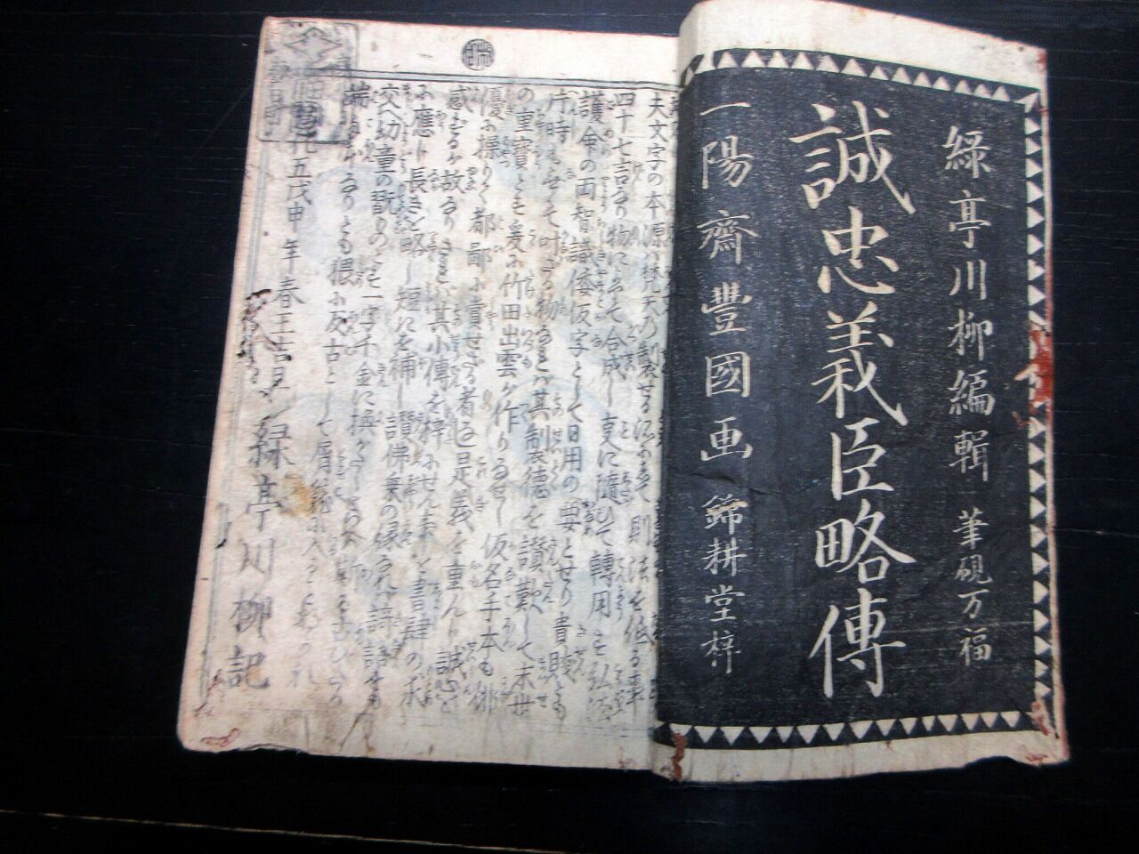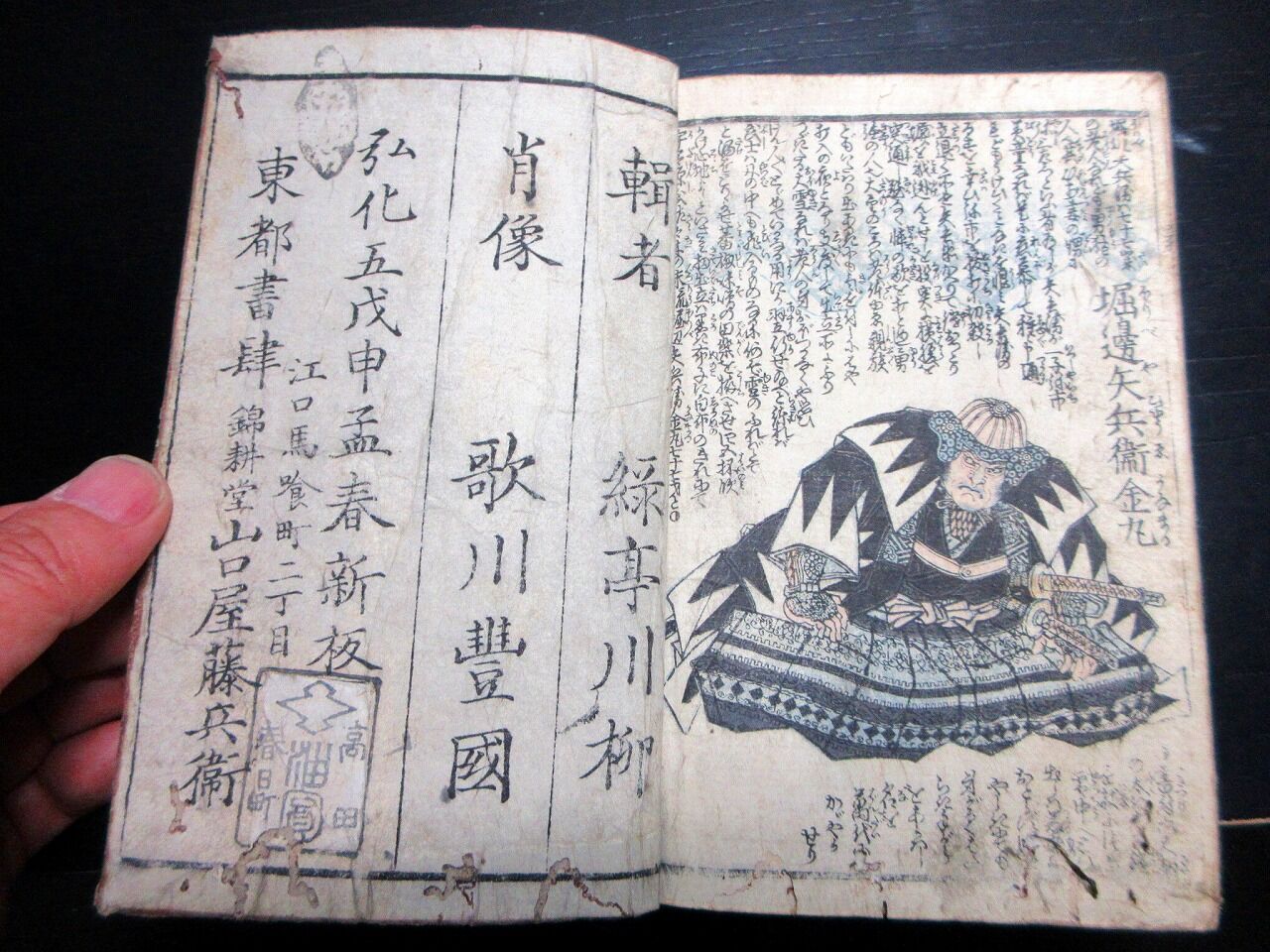 2025年07月10日 和本江戸弘化5年(1848)赤穂浪士忠臣蔵「誠忠義臣略伝」全1冊/緑亭川柳/一陽斎豊国/絵入古書古文書/木版摺り 和本江戸弘化5年(1848)赤穂浪士忠臣蔵「誠忠義臣略伝」全1冊/緑亭川柳/一陽斎豊国/絵入古書古文書/木版摺りです。27丁。18cm×12cm。木版刷り。見返しあり。奥付あり。【書名】 誠忠義臣略伝【巻冊】 全1冊【著者】 緑亭川柳 編 一陽斎豊国 画【成立】 弘化5年(1848) タグ :#和本#忠臣蔵#赤穂浪士#絵本#JAPAN#Antiquebooks#日本の古本屋#大江戸骨董市