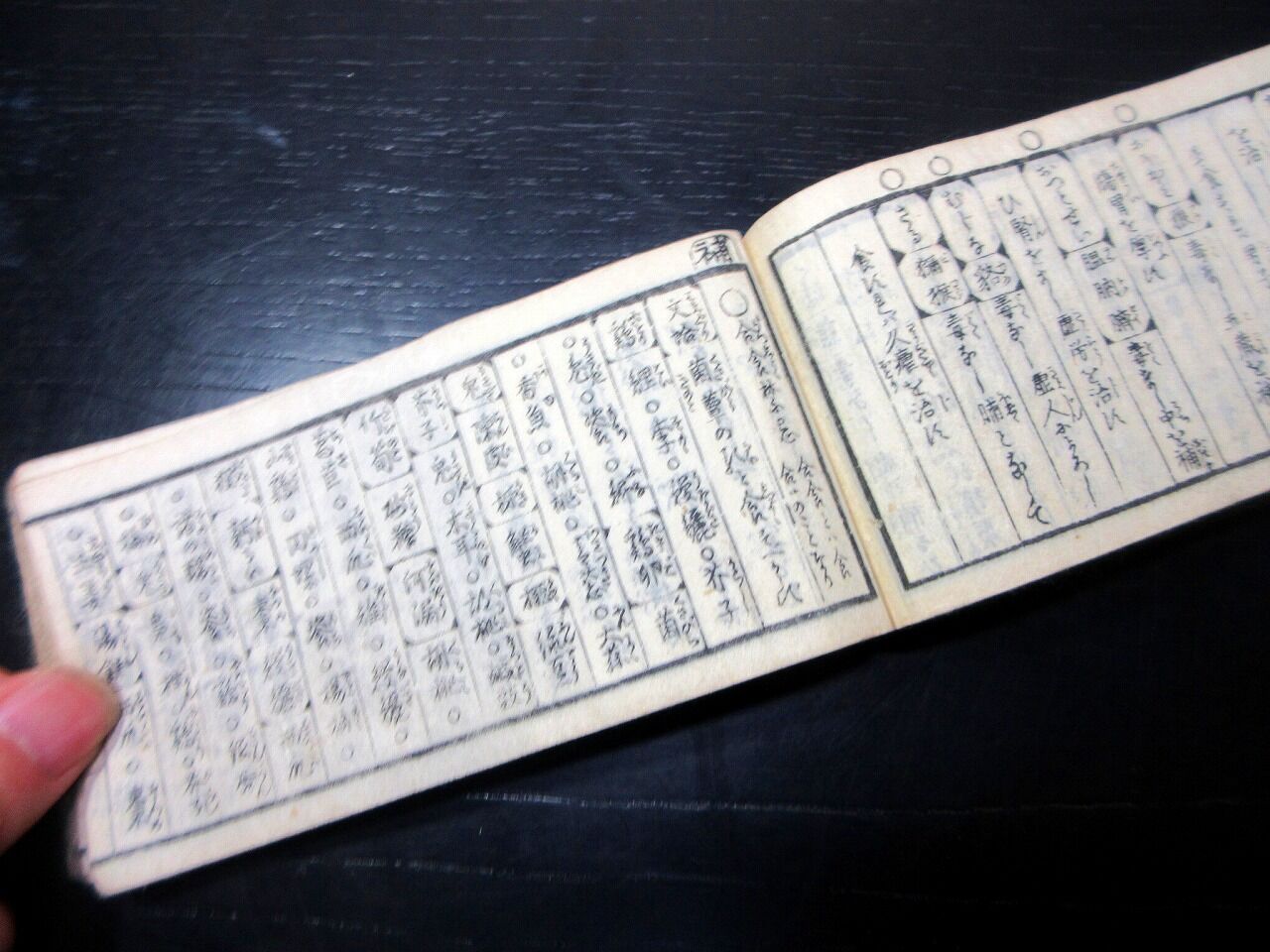 2025年07月24日 和本江戸安政5年跋(1858)信州版「本朝三字経」全1冊/柳田正斎書/古書古文書/木版摺り 和本江戸安政5年跋(1858)信州版「本朝三字経」全1冊/柳田正斎書/古書古文書/木版摺りです。2+10+1丁(7丁目が2つあって、8丁目が欠。手書きで補われている)。23cm×16cm。木版刷り。元題簽。見返しあり。奥付あり。【書名】 本朝三字経【巻冊】 全1冊【著者】 柳田正斎書【成立】 安政5年跋(1858) タグ :#和本#古書#古文書#JAPAN#Antiquebooks#日本の古本屋#大江戸骨董市