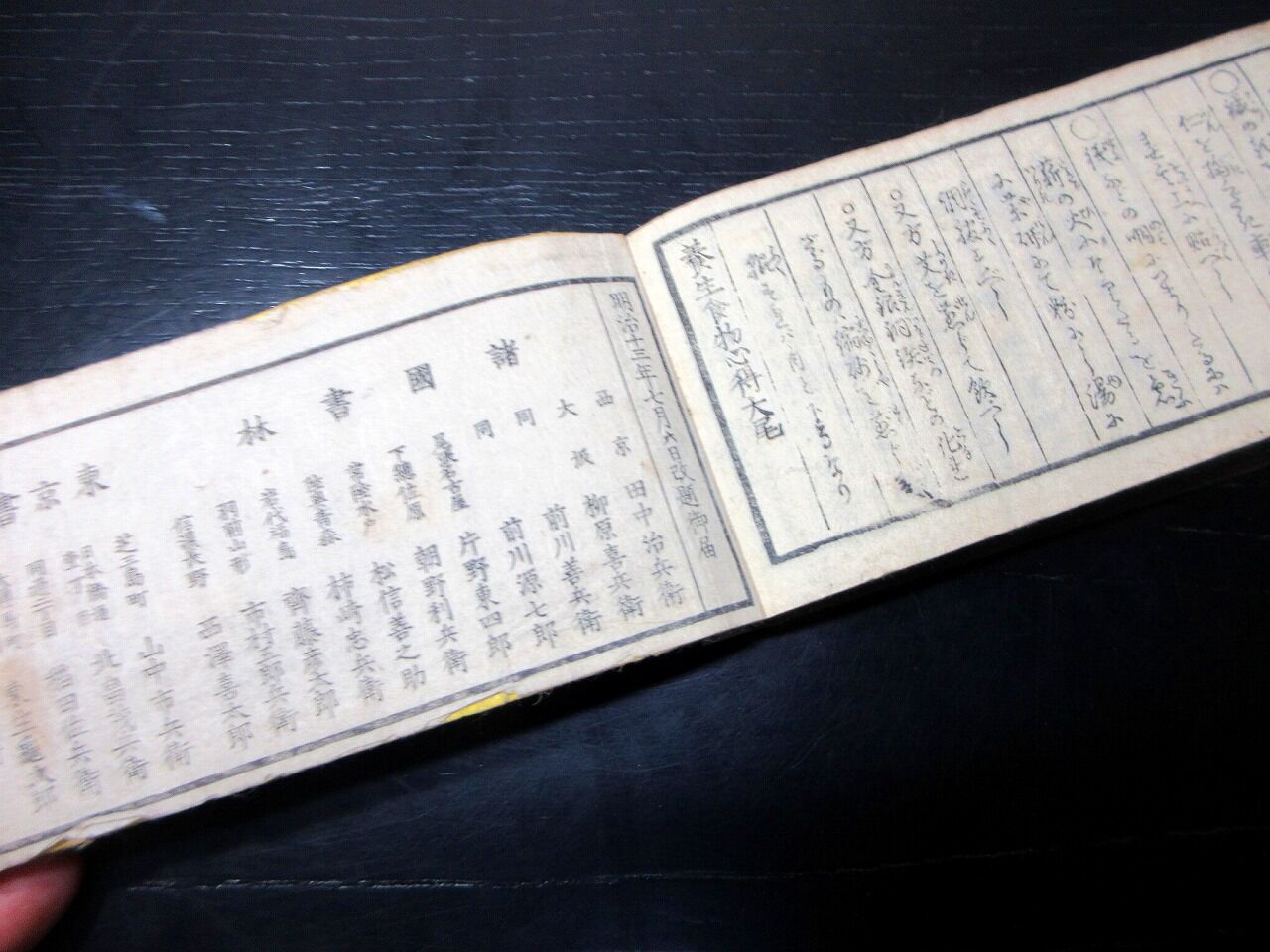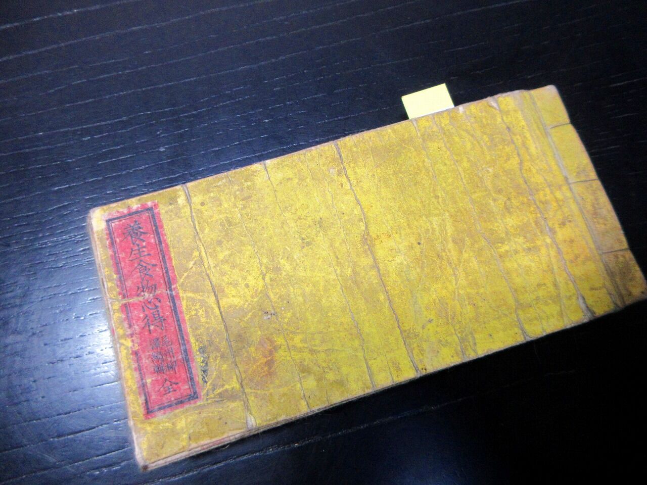 2026年01月26日 和本明治13年(1880)「養生食物心得」全1冊/尾州柳澤/古書古文書/木版摺り 和本明治13年(1880)「養生食物心得」全1冊/尾州柳澤/古書古文書/木版摺りです。2+16+62丁。横本(7cm×15cm)。木版刷り。元題簽。見返しあり。奥付あり。【書名】 養生食物心得【巻冊】 全1冊【著者】 尾州柳澤 編輯【成立】 明治13年(1880) タグ :#和本#本草#JAPAN#Antiquebooks#日本の古本屋#大江戸骨董市