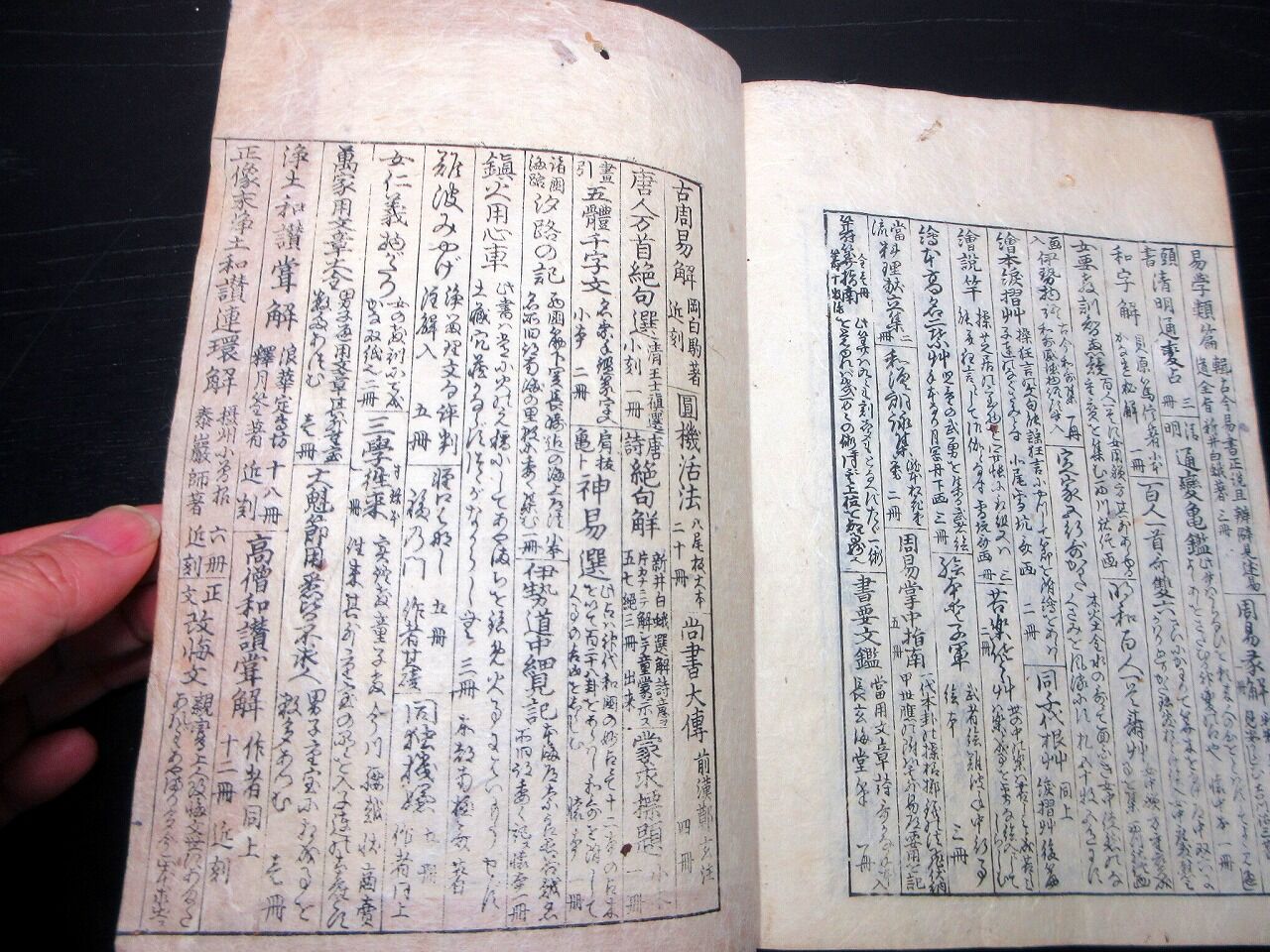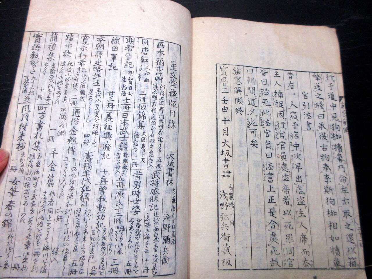 2025年08月29日 和本江戸寛政8年(1796)平安時代の歴史書「文徳実録(日本文徳天皇実録)」10冊揃い/本所宰府文庫の蔵書印/亀戸天神社 和本江戸寛政8年(1796)平安時代の歴史書「文徳実録(日本文徳天皇実録)」10冊揃い/本所宰府文庫の蔵書印/亀戸天神社です。2+23、19、19、21、22、18、18、23、34、27丁。27cm×19cm。木版刷り。平安時代の日本で編纂された歴史書。六国史の第五にあたり、文徳天皇の代である嘉祥3年(850年)から天安2年(858年)までの8年間を扱う。略して文徳実録ともいう。編年体、漢文、全10巻。【書名】 文徳実録(日本文徳天皇実録)【巻冊】 10冊揃い【著者】 本所宰府文庫の蔵書印。亀戸天神社関連の旧蔵書のようです。【成立】 寛政8年(1796) タグ :#和本#亀戸天神#本所宰府文庫#JAPAN#Antiquebooks#日本の古本屋#大江戸骨董市