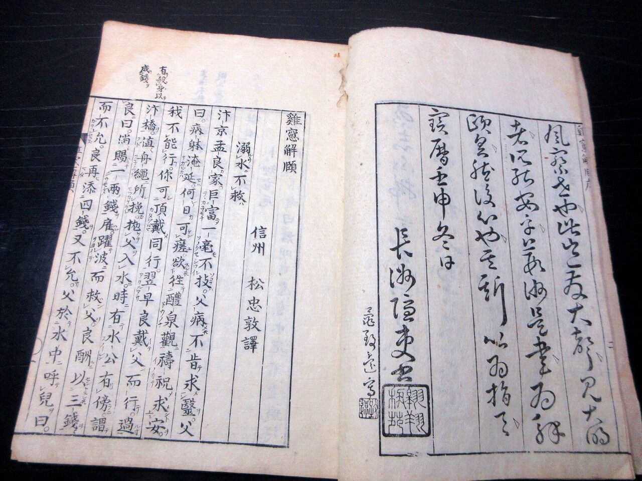 2026年01月23日 和本江戸宝暦2年(1752)漢文囃本「雞窻解頤(けいそうかいい)」全1冊/信州/松忠敦/古書古文書/木版摺り 和本江戸宝暦2年(1752)漢文囃本「雞窻解頤(けいそうかいい)」全1冊/信州/松忠敦/古書古文書/木版摺りです。 2+21丁。26cm×17.5cm。木版刷り。【書名】 雞窻解頤(けいそうかいい)【巻冊】 全1冊【著者】 信州/松忠敦【成立】 宝暦2年(1752) タグ :#和本#古書#古文書#JAPAN#Antiquebooks#日本の古本屋#大江戸骨董市