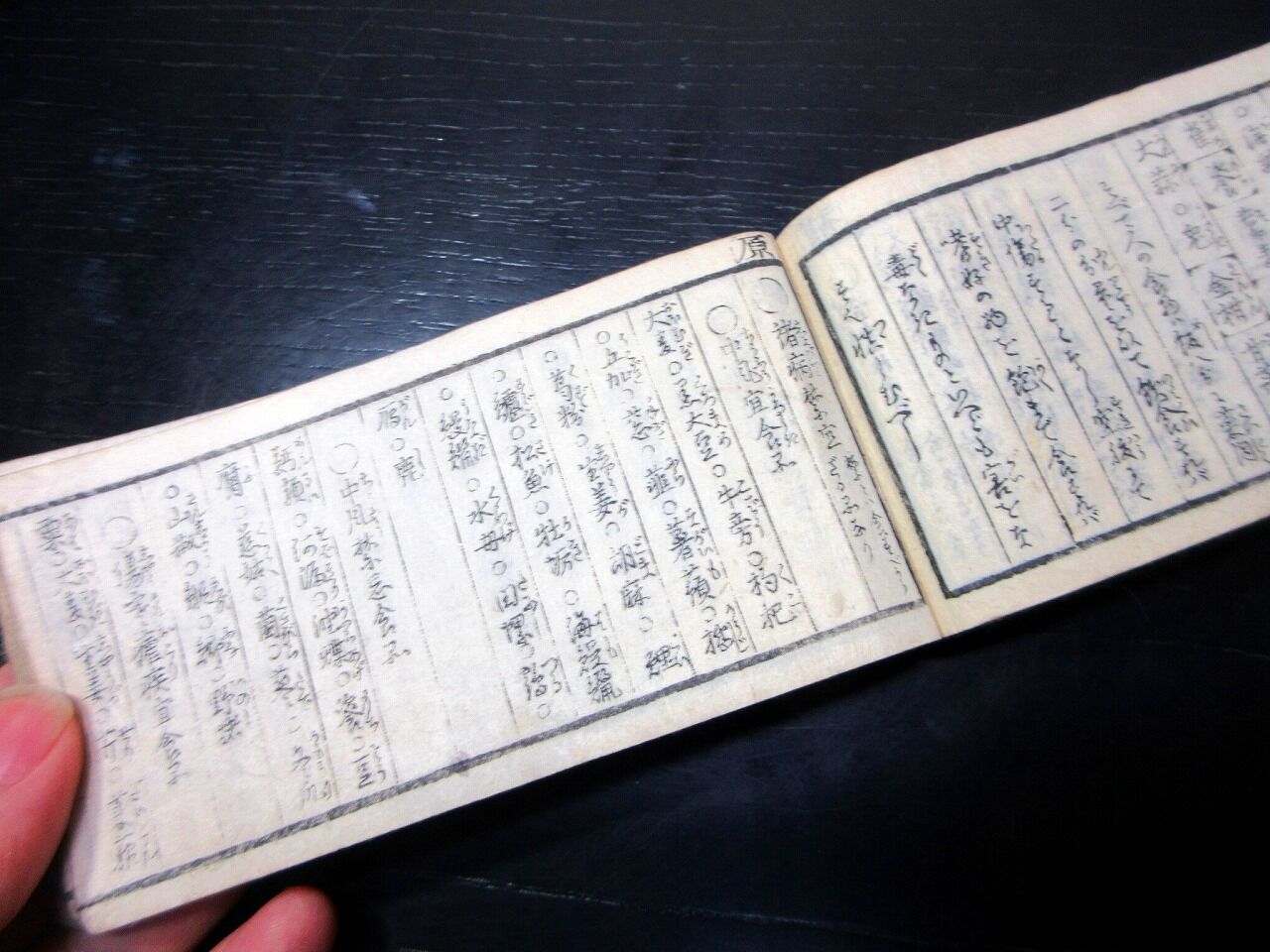 2025年11月20日 和本江戸文政5年(1822)「臨池会席規則」1冊/甲斐一宮浅間神社神官権現古屋掃部伴希真/古書古文書/木版摺り 和本江戸文政5年(1822)「臨池会席規則」1冊/甲斐一宮浅間神社神官権現古屋掃部伴希真/古書古文書/木版摺りです。6丁。23.5cm×15cm。木版刷り。【書名】 臨池会席規則【巻冊】 1冊【著者】 甲斐一宮浅間神社神官権現古屋掃部伴希真【成立】 文政5年(1822) タグ :#和本#浅間神社#古屋#JAPAN#Antiquebooks#日本の古本屋#大江戸骨董市