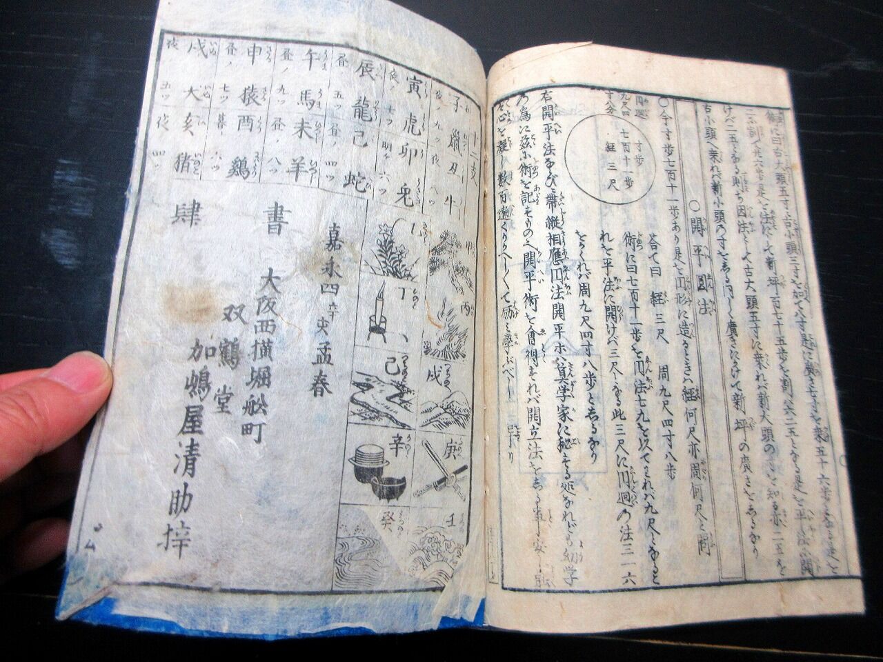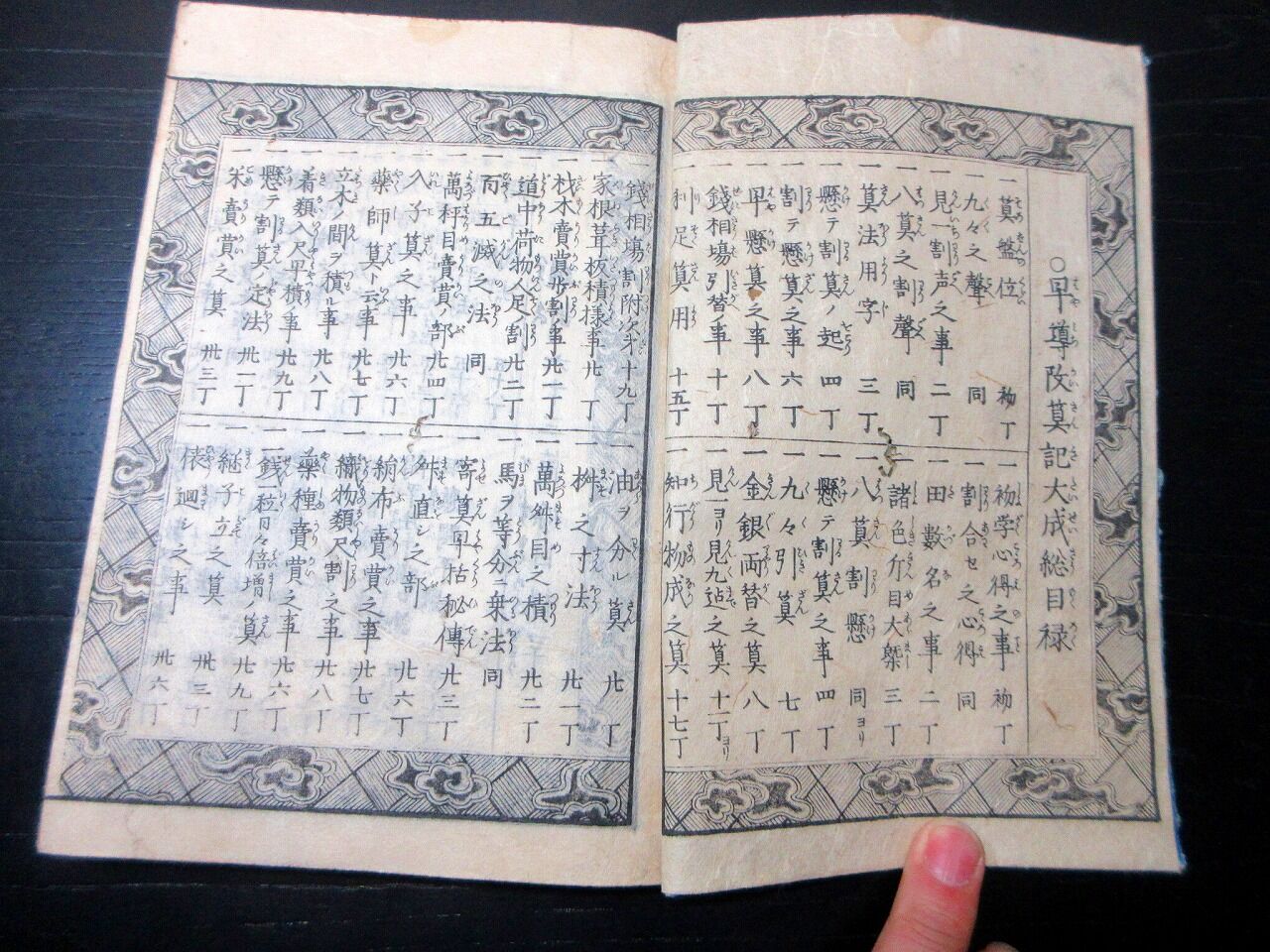 2025年07月17日 和本江戸嘉永4年(1851)和算「早導改算記大成」全1冊/算数/数学/そろばん/絵入古書古文書/木版摺り 和本江戸嘉永4年(1851)和算「早導改算記大成」全1冊/算数/数学/そろばん/絵入古書古文書/木版摺りです。58丁。22cm×15.5cm。木版刷り。元題簽。奥付あり。【書名】 早導改算記大成【巻冊】 全1冊【成立】 嘉永4年(1851) タグ :#和本#和算#算数#数学#そろばん#JAPAN#Antiquebooks#日本の古本屋#大江戸骨董市
