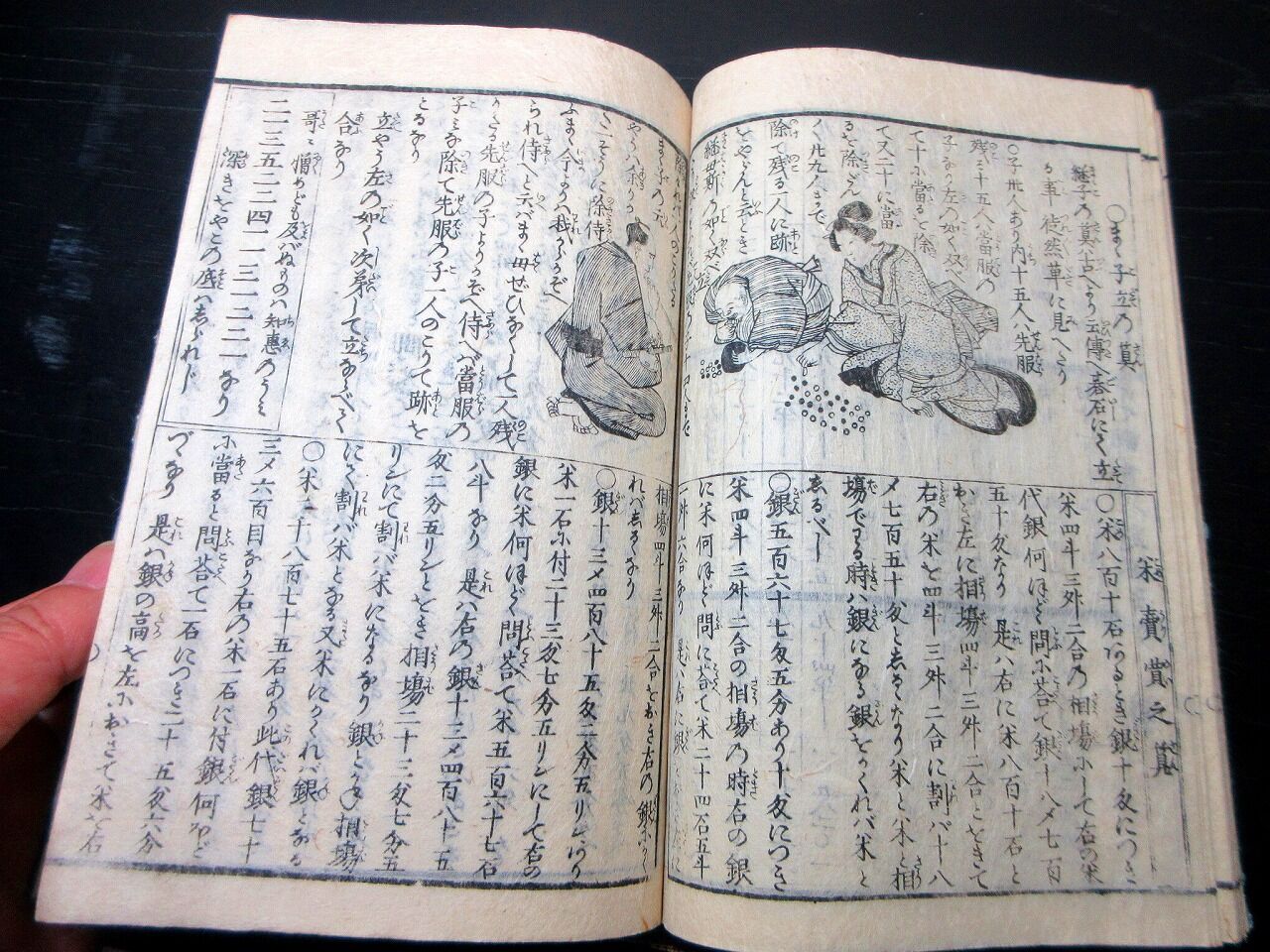 2022年04月15日 和本江戸期和算「万宝改算記(万宝塵劫記大全)」全1冊/吉田光由/北尾雪坑斎/絵入古書古文書/木版摺り/算数/数学/そろばん 和本江戸期和算「万宝改算記(万宝塵劫記大全)」全1冊/吉田光由/北尾雪坑斎/絵入古書古文書/木版摺り/算数/数学/そろばんです。1+33+13丁。半紙本。木版刷り。元題簽。見返しあり。『データ』【書名】 万宝改算記(万宝塵劫記大全)【巻冊】 全1冊【著者】 吉田光由 編 北尾雪坑斎 画【成立】 江戸期 タグ :#和本#和算#塵劫記#算数#数学