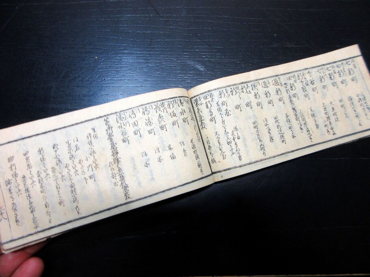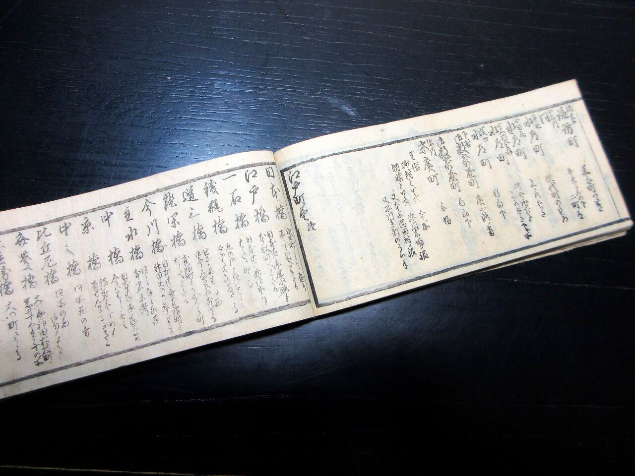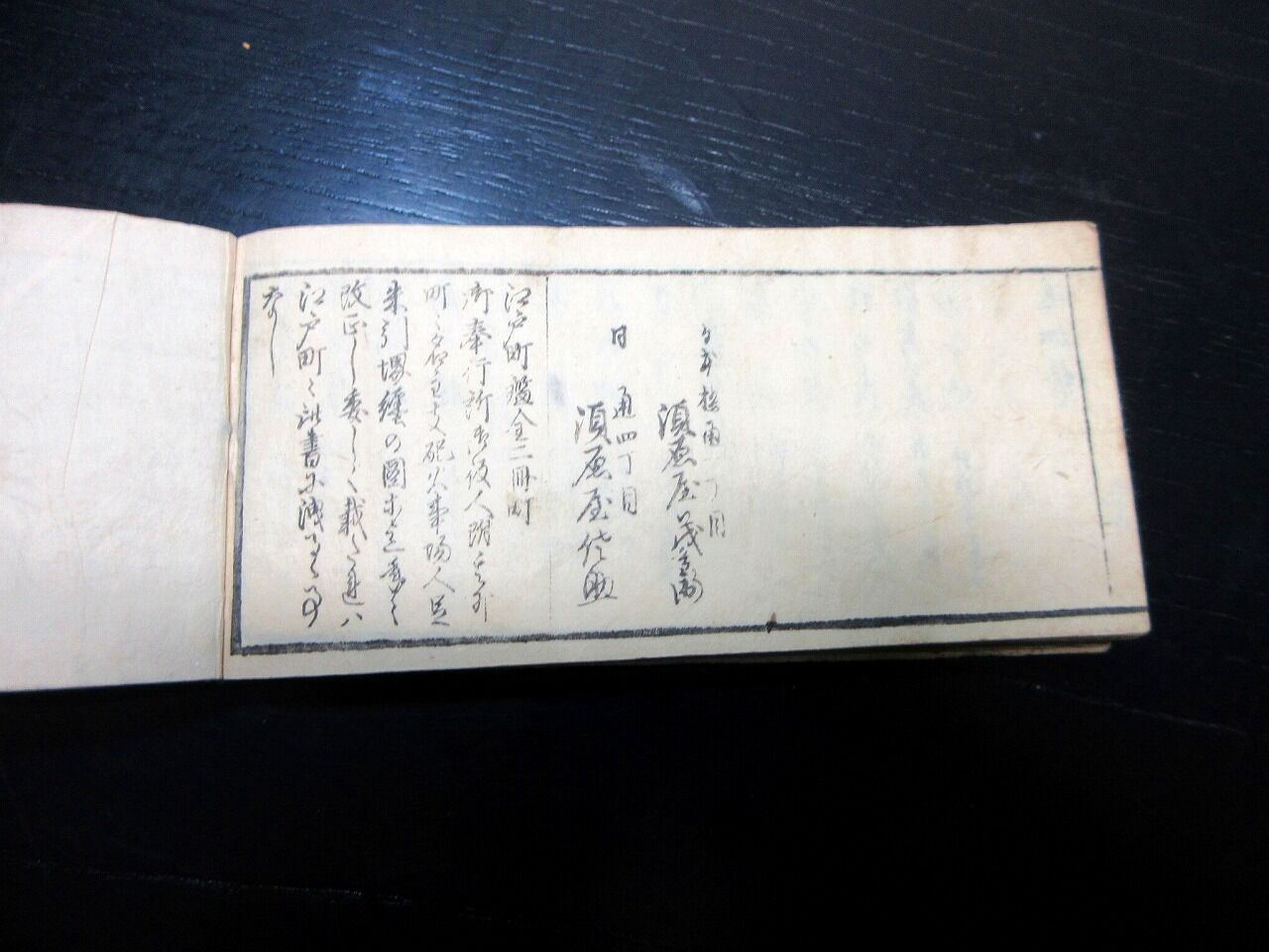 2023年06月23日 和本江戸安政7年(1860)地誌「江戸町独案内」全1冊/古書古文書/木版摺り 和本江戸安政7年(1860)地誌「江戸町独案内」全1冊/古書古文書/木版摺りです。54丁。横本(7cm×14.5cm)。木版刷り。奥付あり。『データ』【書名】 江戸町独案内【巻冊】 全1冊【成立】 安政7年(1860) タグ :#和本#地誌#JAPAN#antiquebook