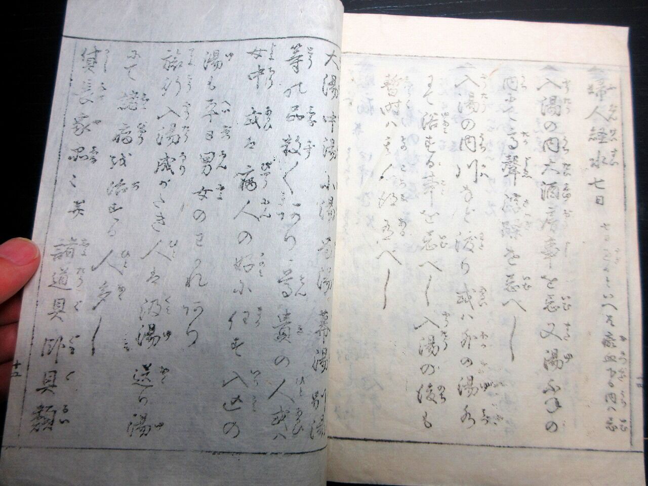 2024年08月31日 和本明治期榊原温泉「温泉来由記」1冊/勢州一志郡榊原湯元山川氏/三重県津市/古書古文書/木版摺り 和本明治期榊原温泉「温泉来由記」1冊/勢州一志郡榊原湯元山川氏/三重県津市/古書古文書/木版摺りです。15丁。23.5cm×16.5cm。木版刷り。【書名】 温泉来由記【巻冊】 1冊【著者】 勢州一志郡榊原湯元山川氏【成立】 明治期 タグ :#和本#温泉#榊原温泉#三重県#津市#JAPAN#antiquebook