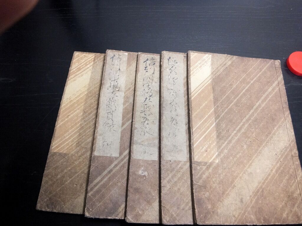 2022年03月08日 和本江戸期武田信玄上杉謙信写本「信州川中島合戦実録」全10巻5冊揃/古書古文書/手書き 和本江戸期武田信玄上杉謙信写本「信州川中島合戦実録」全10巻5冊揃/古書古文書/手書きです。24、28、19、17、16丁。大本程度。手書き。『データ』【書名】 信州川中島合戦実録【巻冊】 全10巻5冊揃【成立】 江戸期の写本だと思いますが、正確な年代は不明。 タグ :#和本#古文書#写本#武田信玄#上杉謙信