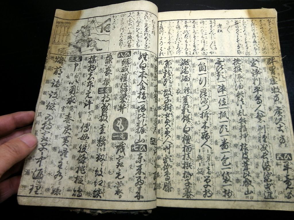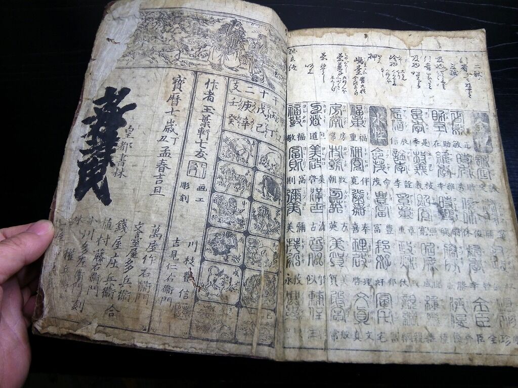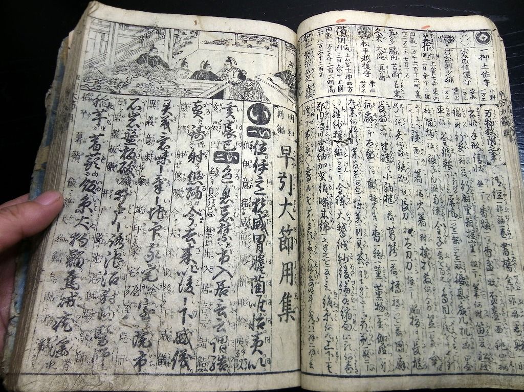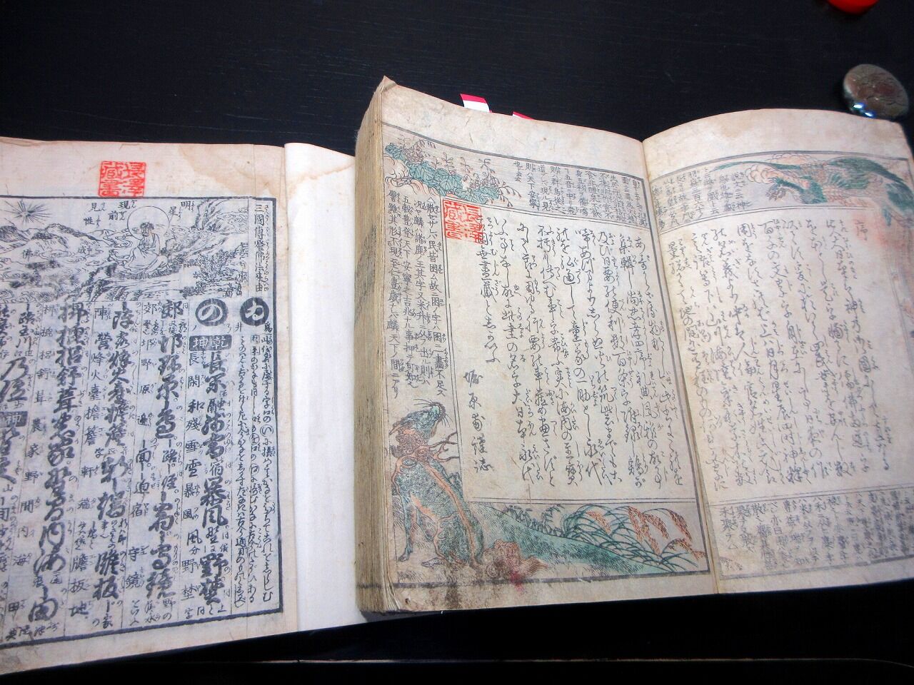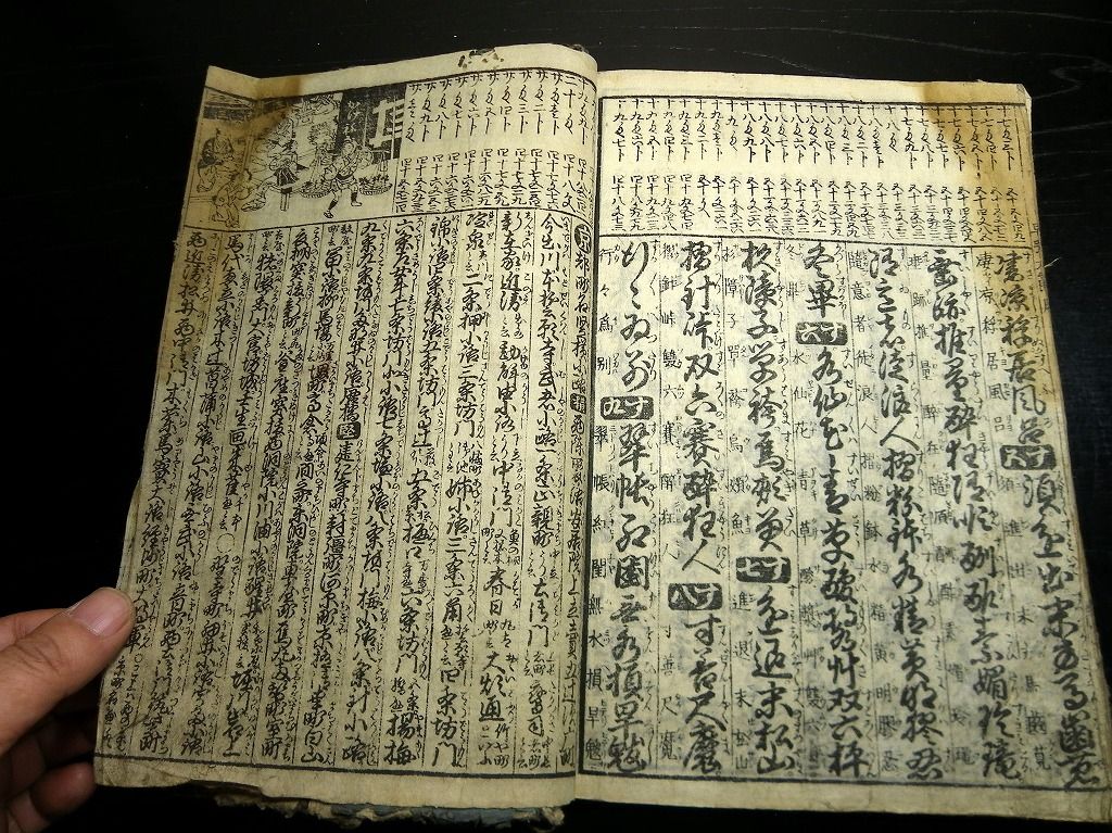2020年01月04日 和本江戸宝暦7年(1757)版漢字辞書事典「大大節用集万字海」全1冊/玉葉軒七友/川枝豊信/絵入古書古文書/木版摺り/古地図 和本江戸宝暦7年(1757)版漢字辞書事典「大大節用集万字海」全1冊/玉葉軒七友/川枝豊信/絵入古書古文書/木版摺り/古地図です。115丁。大本。木版刷り。見返しあり。奥付あり。『データ』【書名】 大大節用集万字海【巻冊】 全1冊【著者】 玉葉軒七友 編 川枝豊信 画 【成立】 宝暦7年(1757)版 タグ :#和本#辞書#事典#古地図#節用集