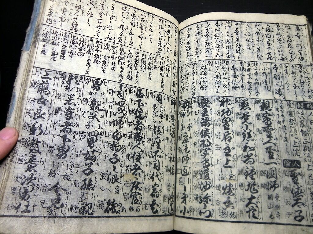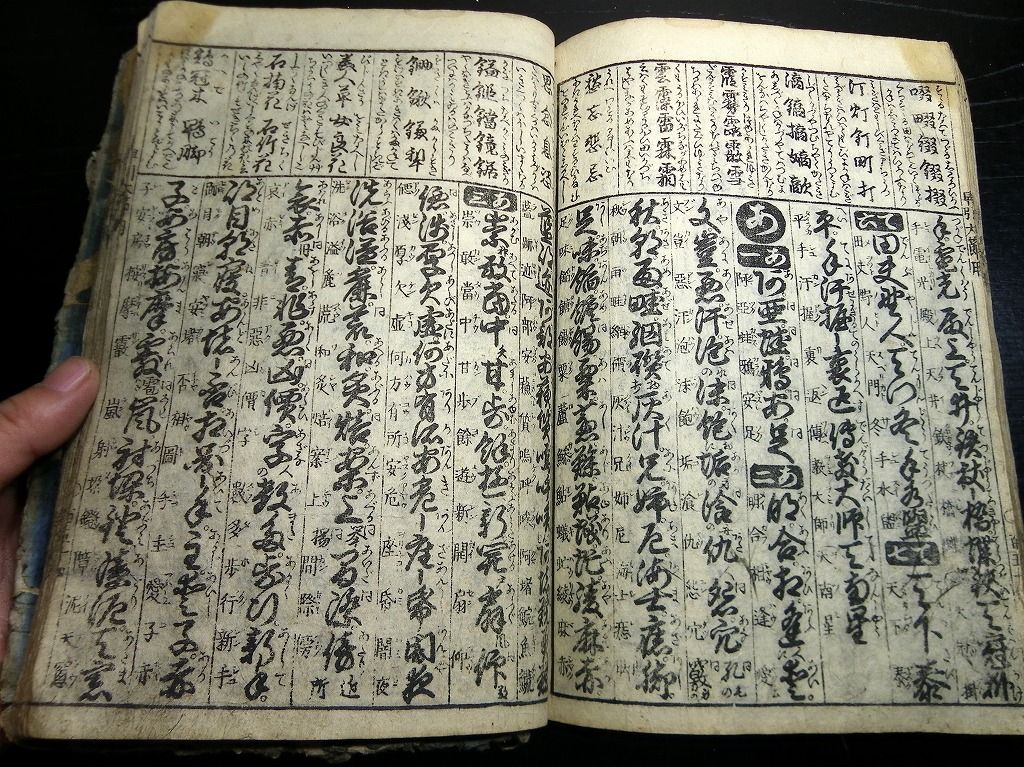 2025年03月14日 和本江戸文化3年(1806)漢字辞書「字貫節用」全1冊/鎌田禎蔵(鎌田環斎)/古書古文書/木版摺り 和本江戸文化3年(1806)漢字辞書「字貫節用」全1冊/鎌田禎蔵(鎌田環斎)/古書古文書/木版摺りです。9+318丁。横本(13cm×18.5cm)。木版刷り。元題簽ほとんど欠。見返し部直しあり。奥付あり。【書名】 字貫節用【巻冊】 全1冊【著者】 鎌田禎蔵(鎌田環斎)【成立】 文化3年(1806) タグ :#和本#辞書#事典#JAPAN#antiquebooks