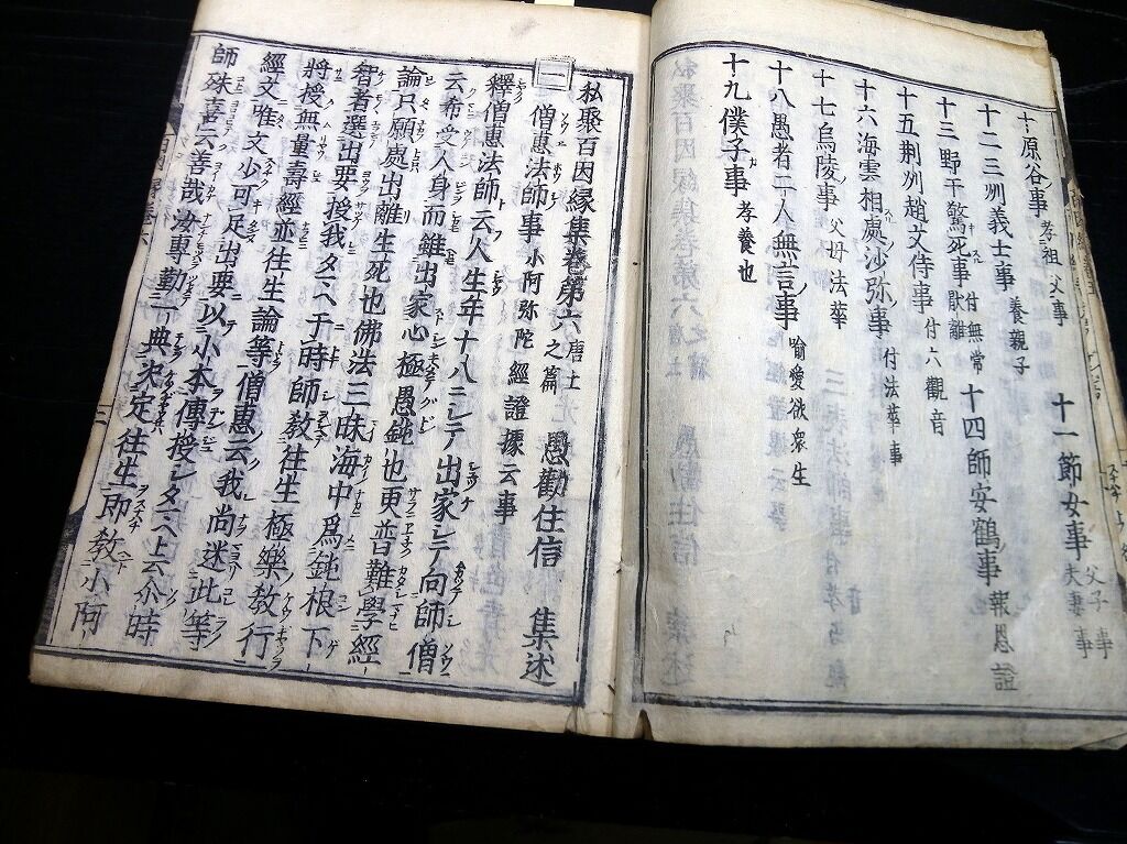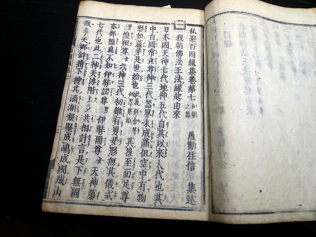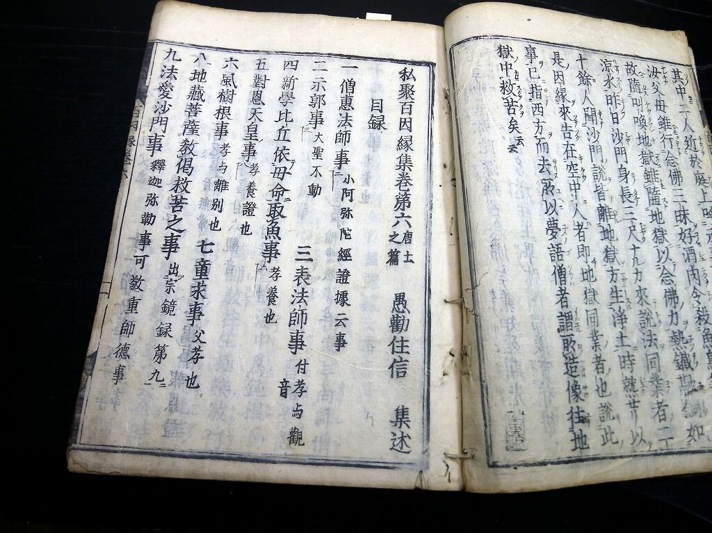 2020年01月18日 和本江戸期木版本鎌倉時代仏教説話「私聚百因縁集」巻5~8合1冊/愚勧住信/古書古文書/木版摺り 和本江戸期木版本鎌倉時代仏教説話「私聚百因縁集」巻5~8合1冊/愚勧住信/古書古文書/木版摺りです。 25+27+35+35丁。大本。木版刷り。 『データ』 【書名】 私聚百因縁集 【巻冊】 巻5~8合1冊 【著者】 愚勧住信 【成立】 江戸期 タグ :#和本#仏教説話#古書#古文書