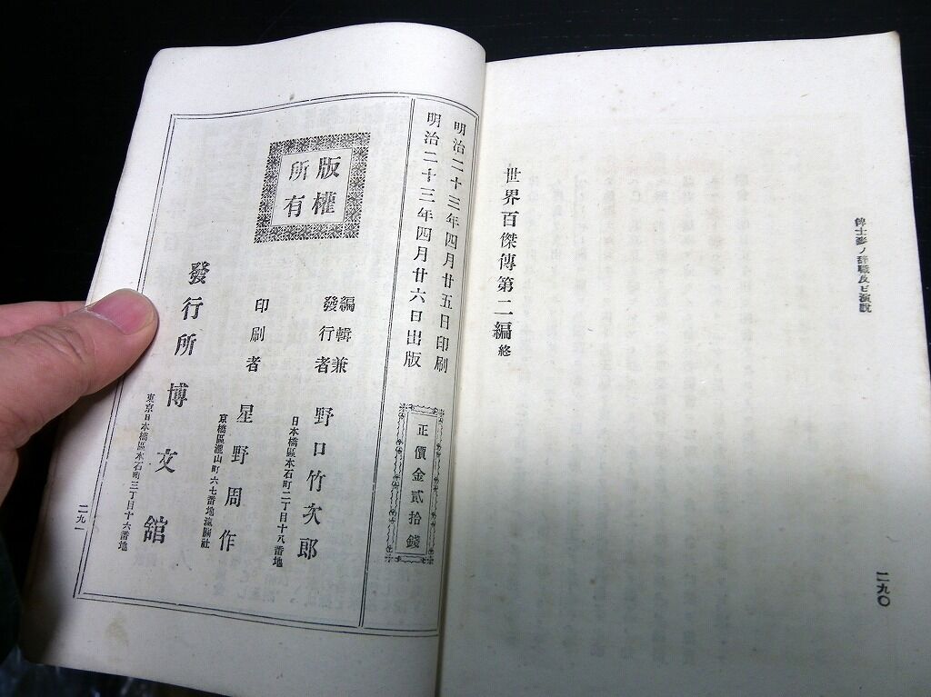 明治23年(1890)世界の偉人伝記「世界百傑伝」1冊/ビスマルク/キリスト/アレキサンダー大王/韓非子/孫子など/絵入古書