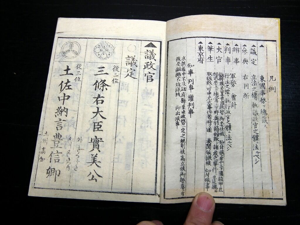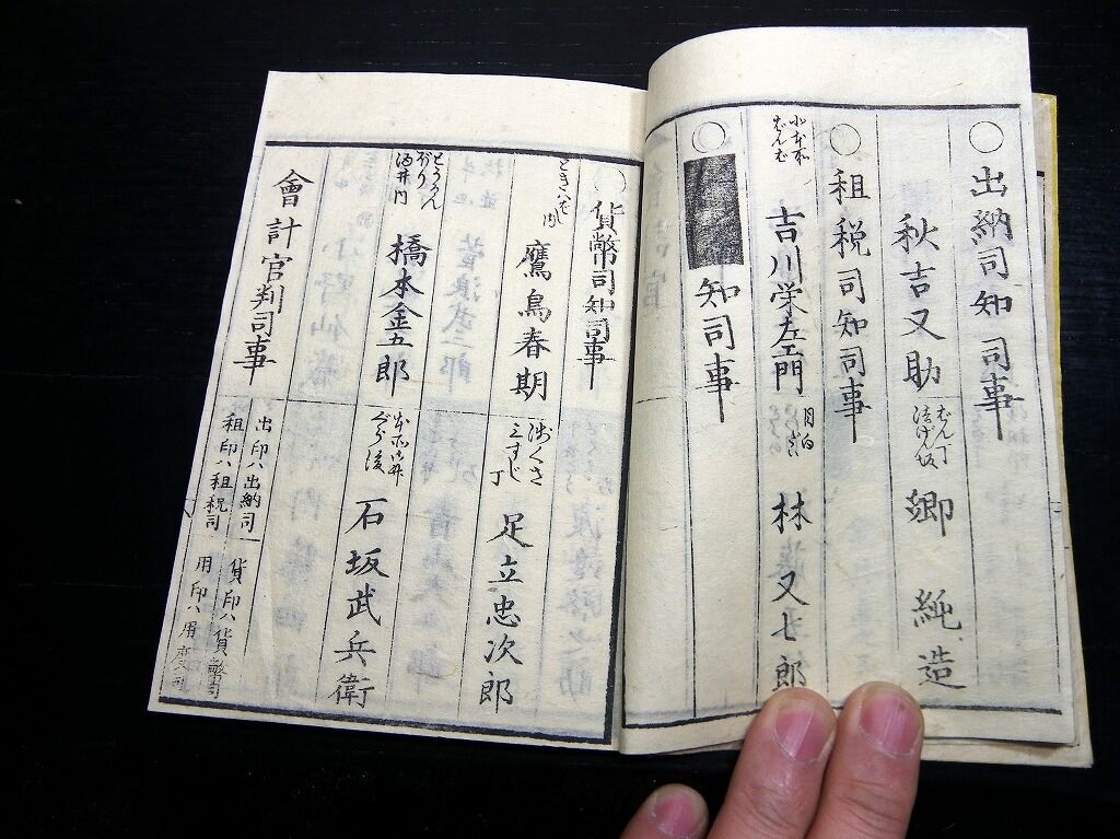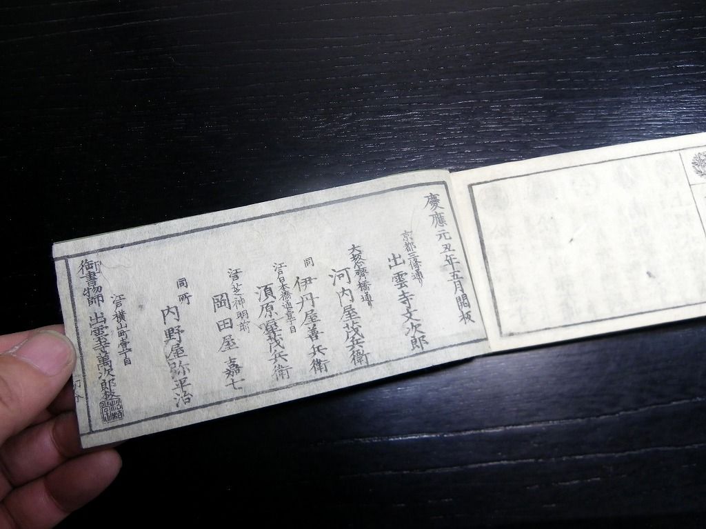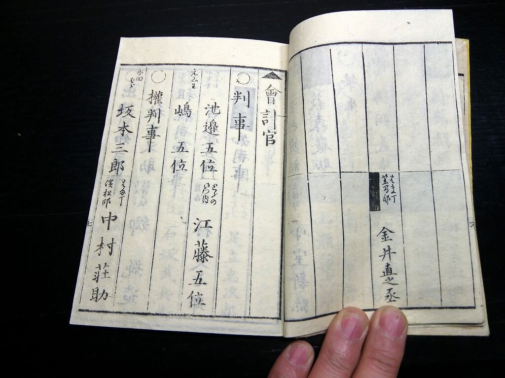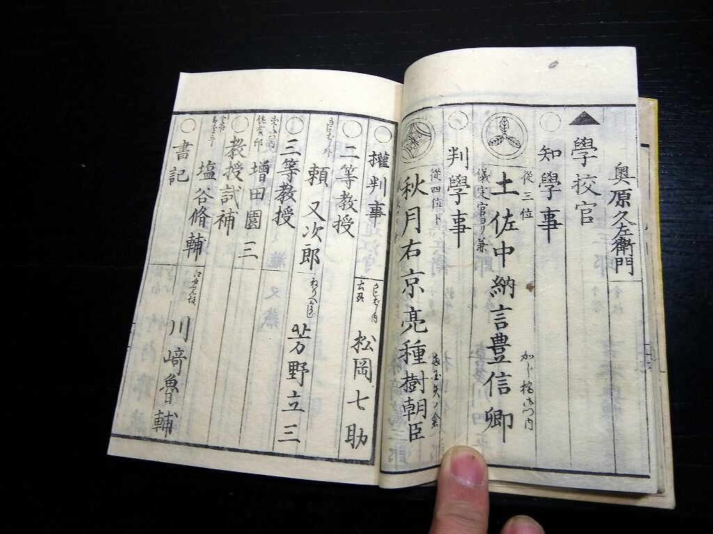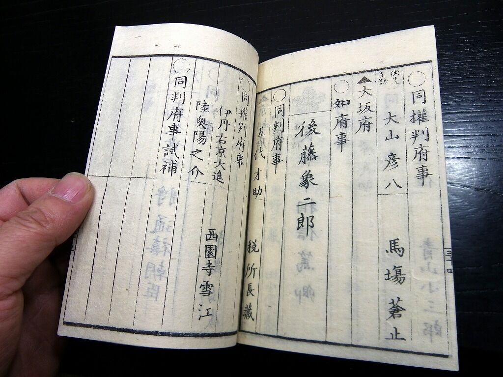 2020年01月03日 和本明治元年頃議政官時代「官員録」全1冊/出雲寺万次郎版/古書古文書/木版摺り 和本明治元年頃議政官時代「官員録」全1冊/出雲寺万次郎版/古書古文書/木版摺りです。 49丁。16cm×11cm。木版刷り。 『データ』 【書名】 官員録 【巻冊】 全1冊 【著者】 出雲寺万次郎版 【成立】 明治元年頃 タグ :#和本#官員録#議政官#出雲寺万次郎