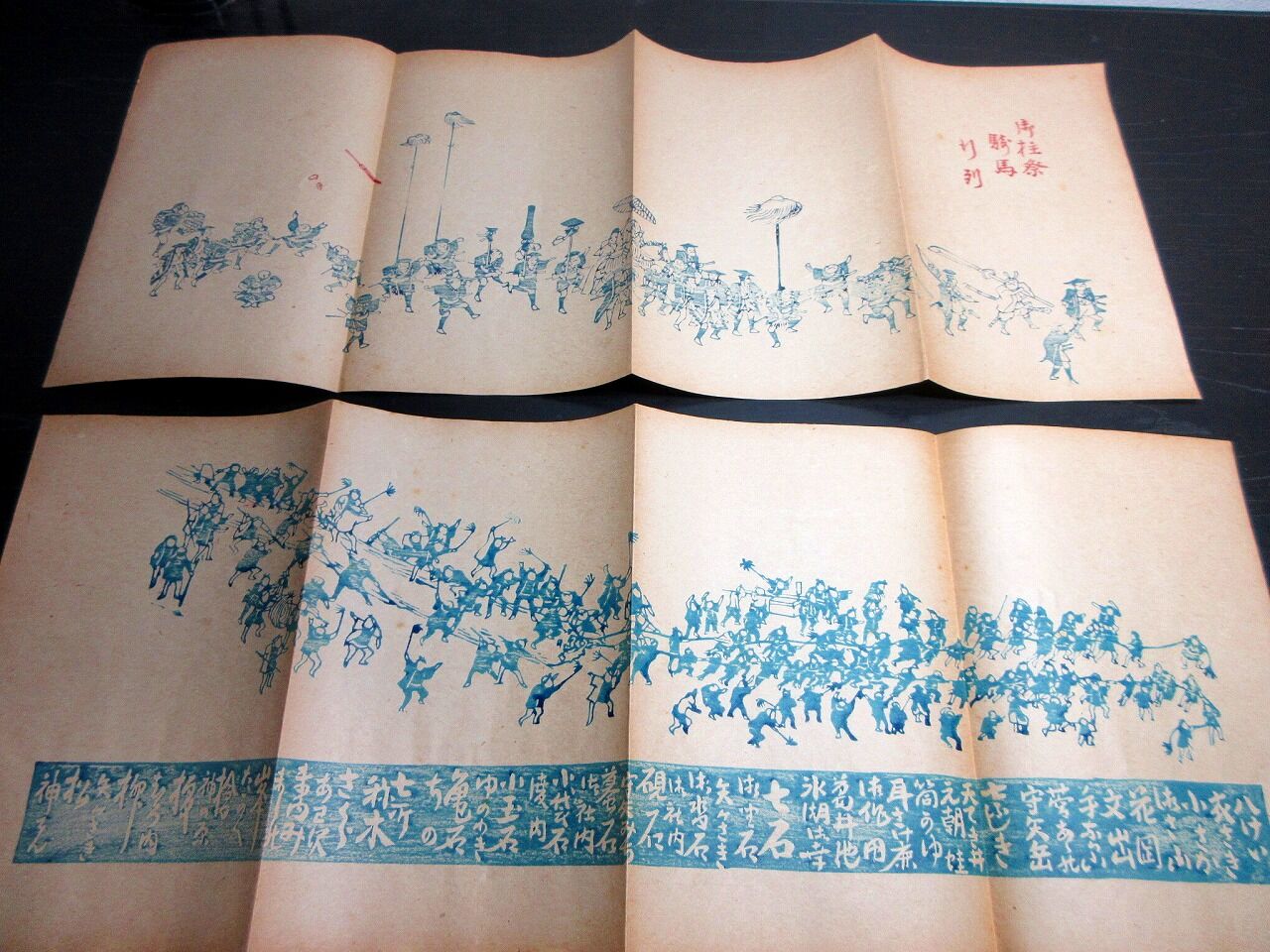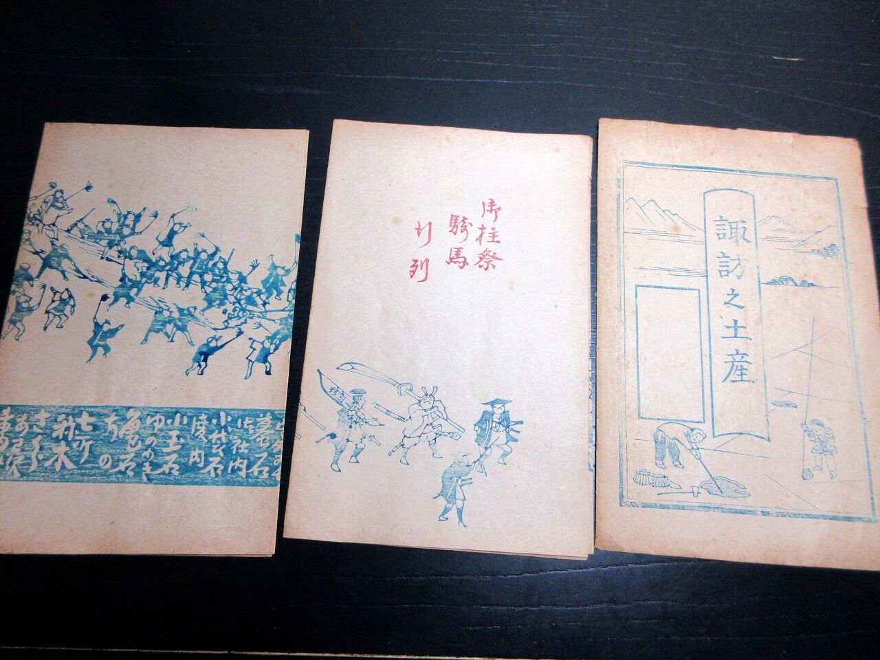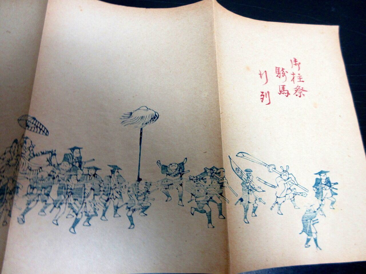 2025年02月22日 明治期ぐらい摺物「諏訪之土産」2点(袋付き)/御柱祭騎馬行列 明治期ぐらい摺物「諏訪之土産」2点(袋付き)/御柱祭騎馬行列です。22cm×56cm。木版刷り。【書名】 諏訪之土産【巻冊】 2点(袋付き)【成立】 明治期ぐらい タグ :#摺物#刷物#諏訪大社#御柱#JAPAN#antiquebooks