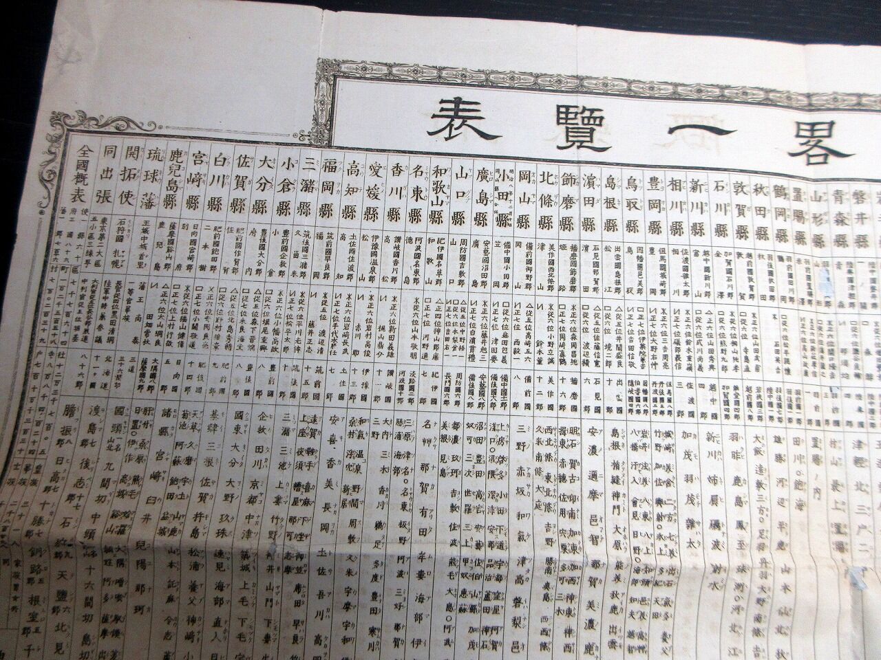 2025年05月03日 明治前期「府県概略一覧表」1点/古書/銅版摺り 明治前期「府県概略一覧表」1点/古書/銅版摺りです。32.5cm×47cm。銅版刷り。【書名】 府県概略一覧表【巻冊】 1点【成立】 明治前期 タグ :#刷物#摺物#銅版#JAPAN#antiquebooks#日本の古本屋#大江戸骨董市
