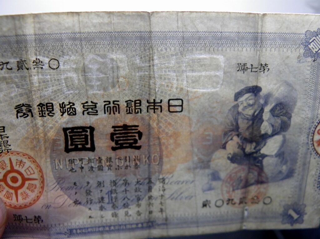 2020年06月05日 明治期紙幣「大黒1円」1点/貨幣/古銭/旧兌換銀行券1円 明治期紙幣「大黒1円」1点/貨幣/古銭/旧兌換銀行券1円です。 78mm×135mm。 『データ』 【書名】 大黒1円 【巻冊】 1点 【成立】 明治期 タグ :#貨幣#紙幣#明治#古銭