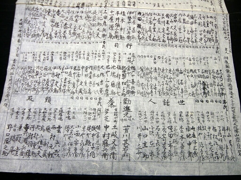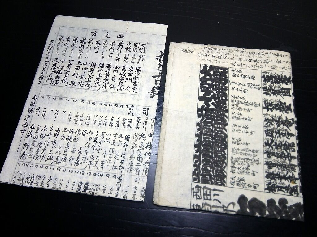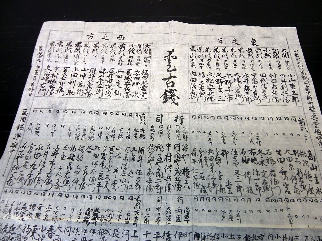 2020年12月16日 明治期古銭コレクター番付写し「西田川東田川飽海郡古銭家一覧/愛古銭」2点/羽後国飽海郡酒田/天授楼山岸貞栄/古書古文書/手書き 明治期古銭コレクター番付写し「西田川東田川飽海郡古銭家一覧/愛古銭」2点/羽後国飽海郡酒田/天授楼山岸貞栄/古書古文書/手書きです。大きい方が63cm×41cm。手書き。『データ』【書名】 西田川東田川飽海郡古銭家一覧/愛古銭【巻冊】 2点【著者】 羽後国飽海郡酒田で写されたもの(天授楼山岸貞栄)【成立】 明治16、24年写 タグ :#番付#古文書#古銭