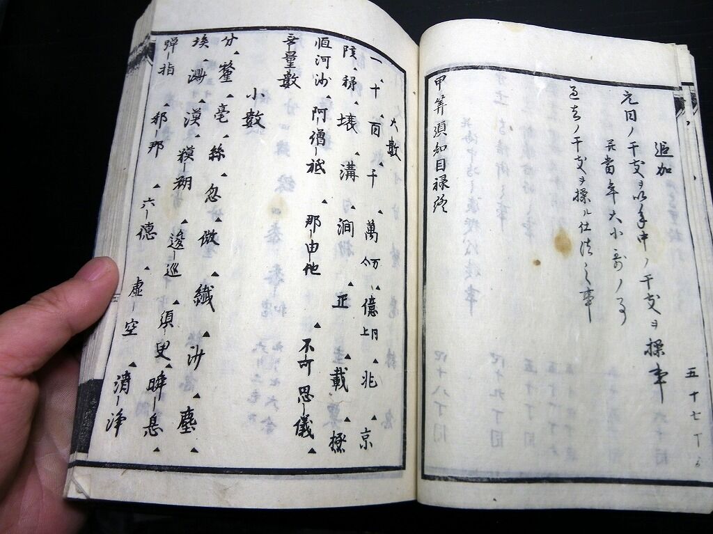 2021年04月15日 和本江戸寛政5年(1793)序山梨和算「峡算須知(甲算須知)」全1冊/井上昌倫/算数/数学/そろばん/古書古文書/木版摺り 和本江戸寛政5年(1793)序山梨和算「峡算須知(甲算須知)」全1冊/井上昌倫/算数/数学/そろばん/古書古文書/木版摺りです。4+58+1丁。半紙本。木版刷り。元題簽。『データ』【書名】 峡算須知(甲算須知)【巻冊】 全1冊【著者】 井上昌倫(江戸時代後期の和算家。 宝暦元年生まれ。甲斐巨摩郡の農民。寛政5年「峡算(甲算)須知」をあらわし,相場割りや両替率の計算法,算盤練習法などを記述した。文化12年4月26日死去。65歳。)【成立】 寛政5年(1793)序 タグ :#和本#和算#数学#算数#山梨