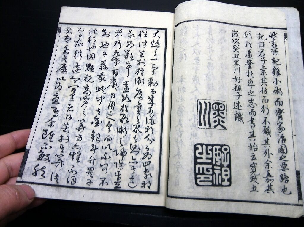 2021年01月25日 和本明治2年(1869)甲斐/古屋蜂城儒学儒教「四書字引捷径」全1冊/古書古文書/木版摺り 和本明治2年(1869)甲斐/古屋蜂城儒学儒教「四書字引捷径」全1冊/古書古文書/木版摺りです5+81+2丁。中本。木版刷り。元題簽。見返しあり。奥付あり。『データ』【書名】 四書字引捷径【巻冊】 全1冊【著者】 甲斐 古屋蜂城(江戸時代中期-後期の漢学者,書家。明和2年生まれ。古屋真章の養子。加賀美光章にまなび,寛政元年蜂城塾をひらいた。書は陸奥会津藩(福島県)藩士糟谷幸造にまなんだ。嘉永5年8月16日死去。88歳。甲斐(山梨県)出身。本姓は志村。名は希真。字は修之。通称は専蔵。著作に「四書字引捷径」など。)【成立】 明治2年(1869) タグ :#和本#儒教#古屋蜂城#山梨