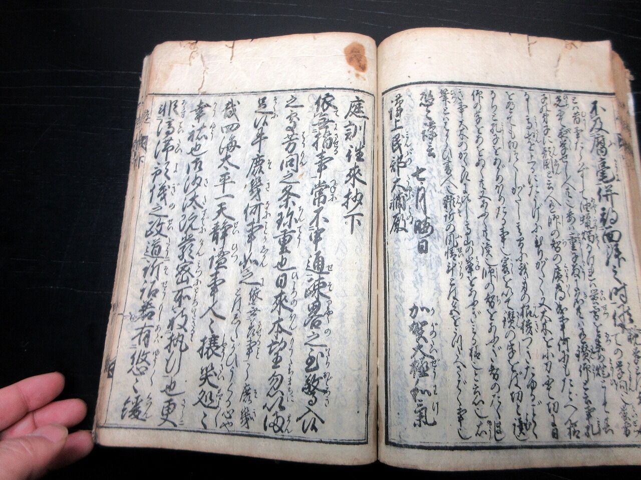 2024年04月11日 和本江戸天明7年(1787)往来物「文林節用筆海大全」全1冊/絵入古書古文書/木版摺り 和本江戸天明7年(1787)往来物「文林節用筆海大全」全1冊/絵入古書古文書/木版摺りです。 27+126丁。26cm×18cm。木版刷り。元題簽。見返しあり。奥付あり。【書名】 文林節用筆海大全【巻冊】 全1冊【成立】 天明7年(1787) タグ :#和本#往来物#JAPAN#antiquebook