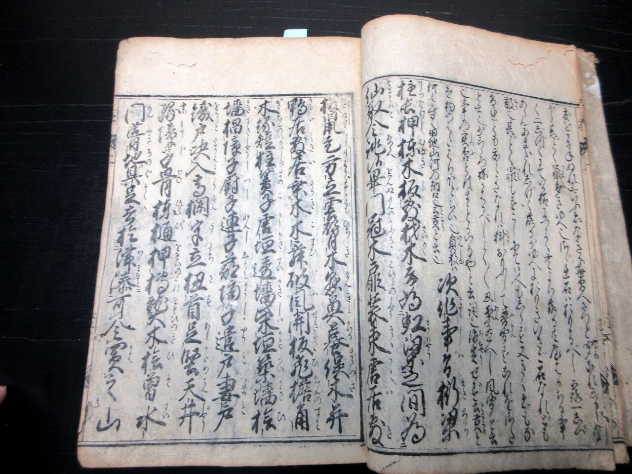 2025年02月28日 和本江戸期恋文文例集「諸女安文大全」全1冊/古書古文書/木版摺り 和本江戸期恋文文例集「諸女安文大全」全1冊/古書古文書/木版摺りです。37丁。横本(14.5cm×20.5cm)。木版刷り。元題簽。【書名】 諸女安文大全【巻冊】 全1冊【成立】 江戸期 タグ :#和本#艶本#往来物#恋文#JAPAN#antiquebooks#日本の古本屋#大江戸骨董市