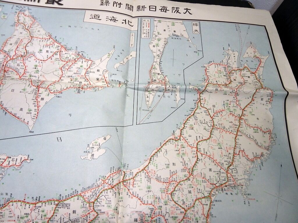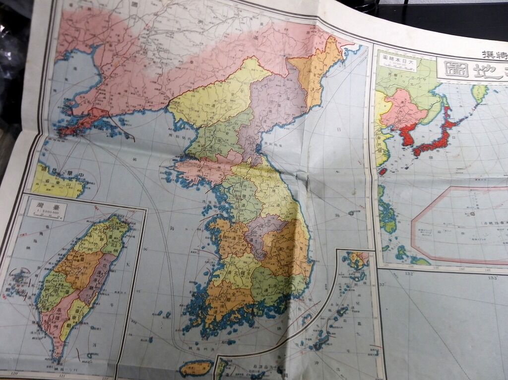 2021年04月17日 昭和8年(1933)古地図「最新大日本地図」1点/大阪朝日新聞附録/朝鮮/台湾/樺太 昭和8年(1933)古地図「最新大日本地図」1点/大阪朝日新聞附録/朝鮮/台湾/樺太です。78cm×107cm。『データ』【書名】 最新大日本地図【巻冊】 1点【著者】 大阪朝日新聞附録【成立】 昭和8年(1933) タグ :#古地図#朝鮮#台湾#樺太