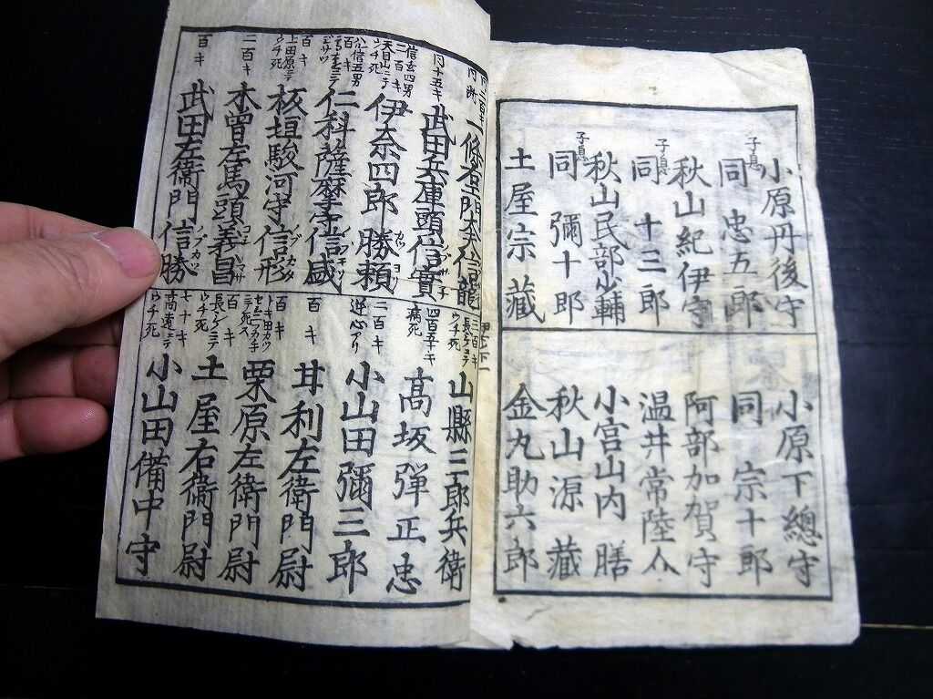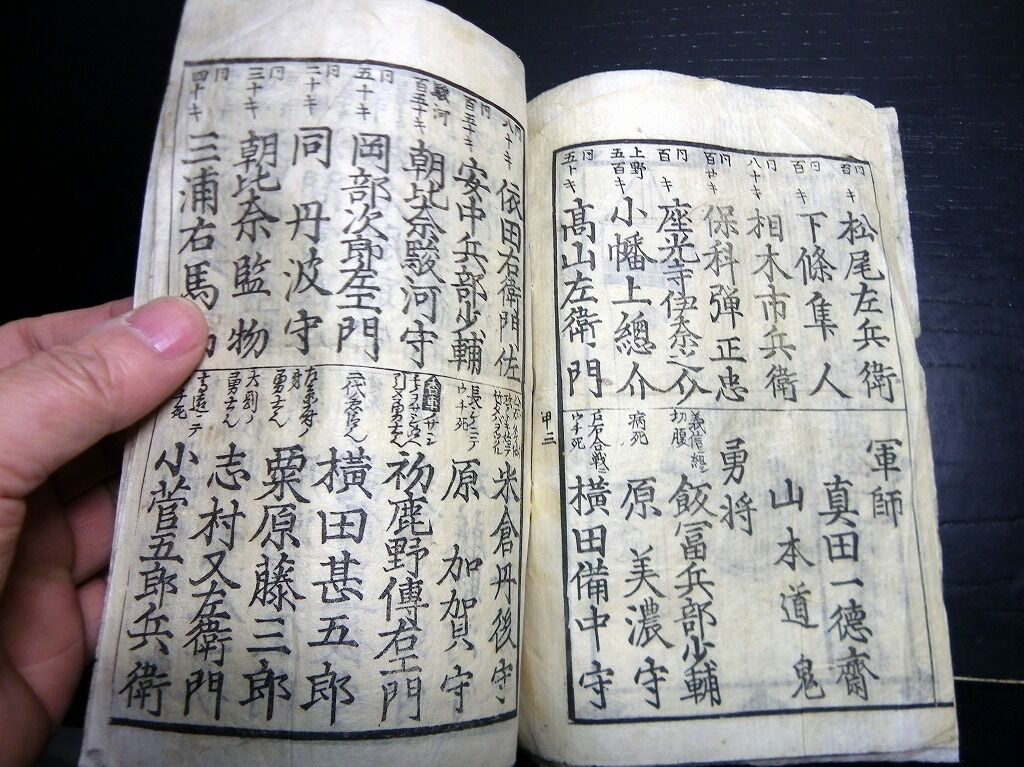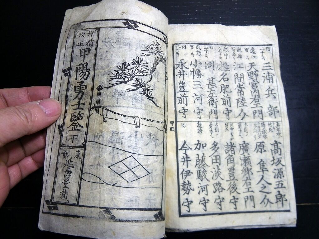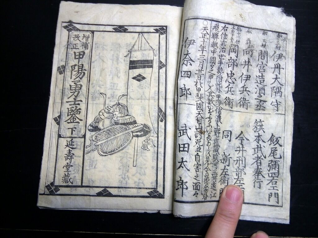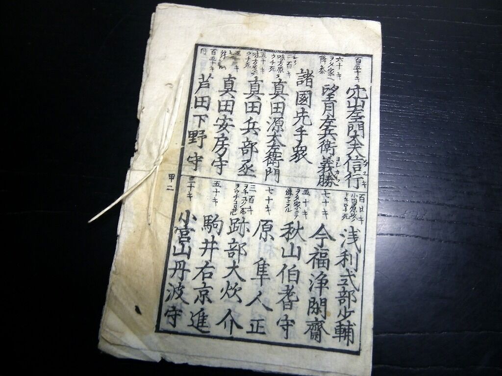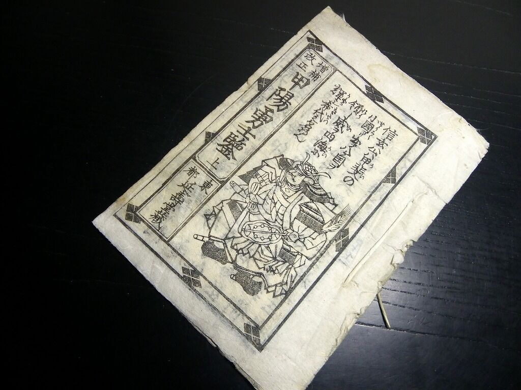 2023年01月06日 和本江戸期「増補改正甲陽勇士鑑」上下下の3冊分合1冊/古書古文書/木版摺り/武田信玄/武鑑 和本江戸期「増補改正甲陽勇士鑑」上下下の3冊分合1冊/古書古文書/木版摺り/武田信玄/武鑑です。2+2+2丁。19cm×12.5cm。木版刷り。『データ』【書名】 増補改正甲陽勇士鑑【巻冊】 上下下の3冊分が1冊になっています【著者】 東都延寿堂蔵【成立】 幕末期 タグ :#和本#武田信玄#武鑑#JAPAN#antiquebook