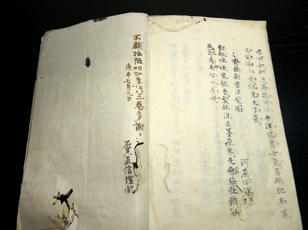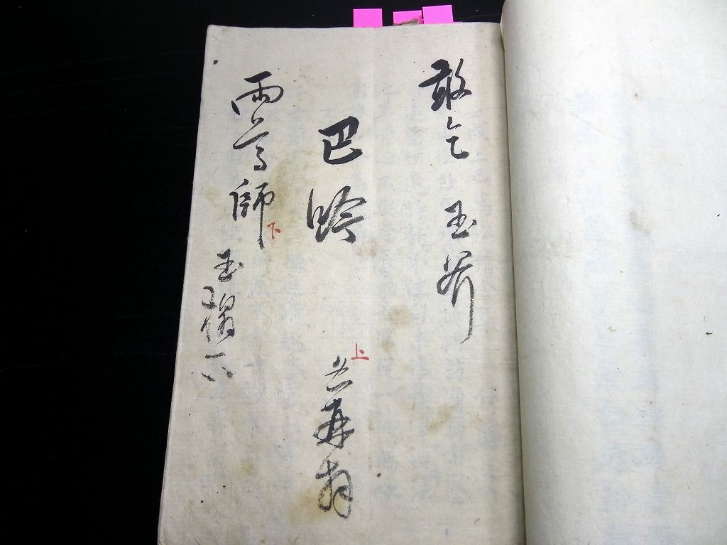 2021年05月25日 和本江戸期写本「訓訳示蒙」全5巻合2冊揃/荻生徂徠/河原田浩高/河原田熊蔵/角館の秋田藩士/古書古文書/手書き 和本江戸期写本「訓訳示蒙」全5巻合2冊揃/荻生徂徠/河原田浩高/河原田熊蔵/角館の秋田藩士/古書古文書/手書きです。38、42丁。半紙本程度。手書き。河原田浩高/河原田熊蔵の記載がある。角館の秋田藩士だと思います。『データ』【書名】 訓訳示蒙【巻冊】 全5巻合2冊揃【著者】 荻生徂徠【成立】 江戸期 タグ :#和本#荻生徂徠#写本#秋田藩