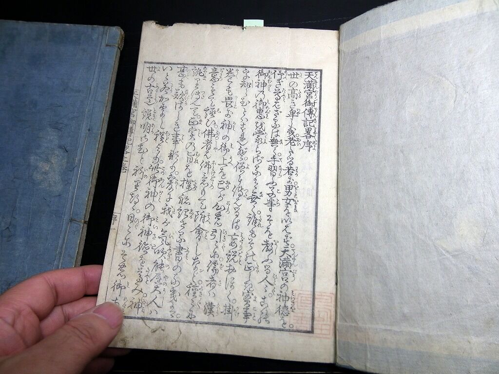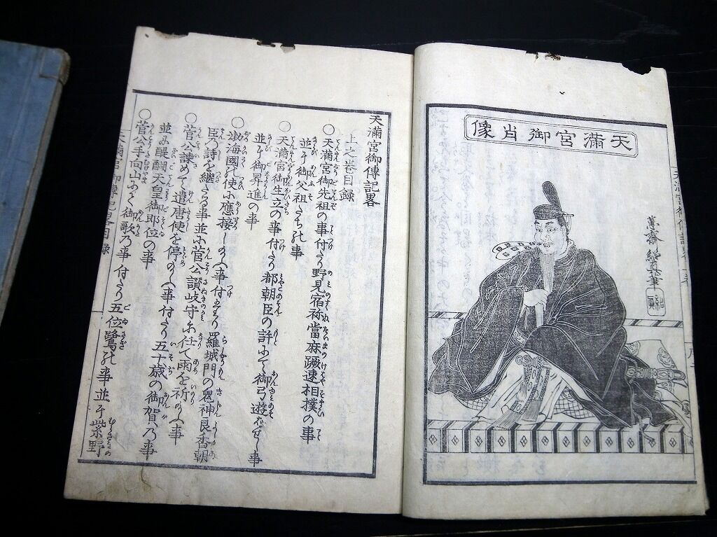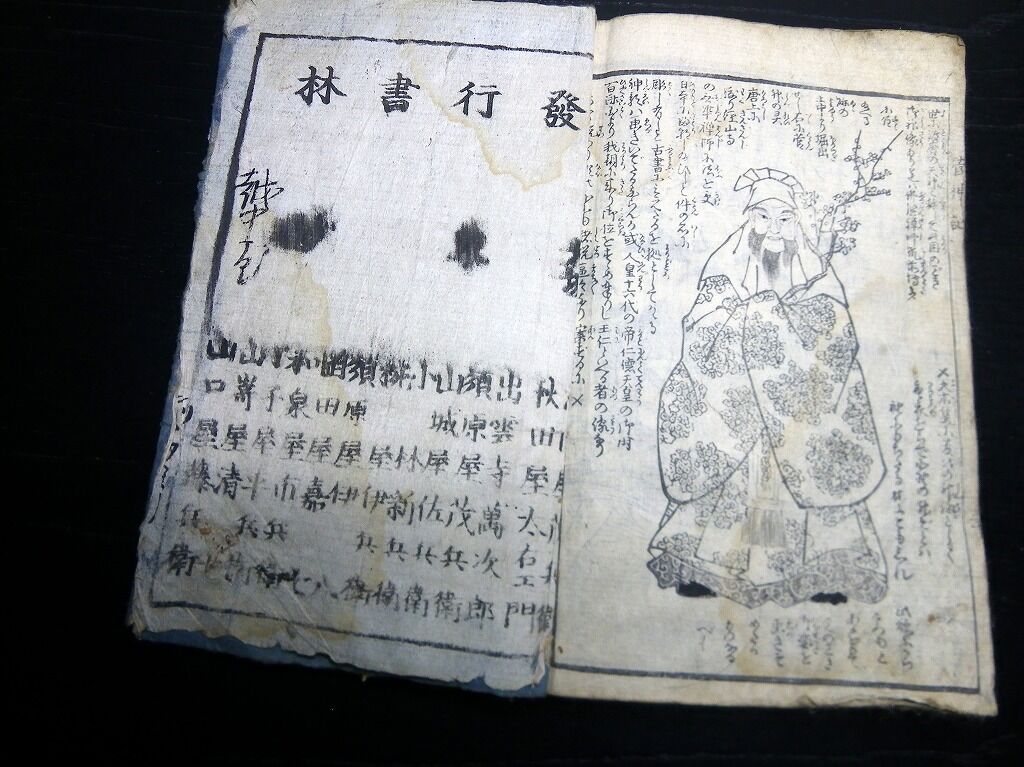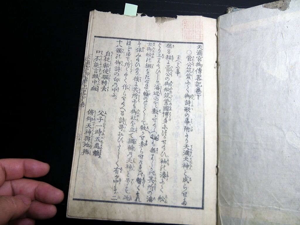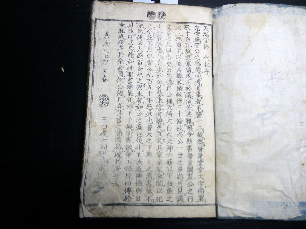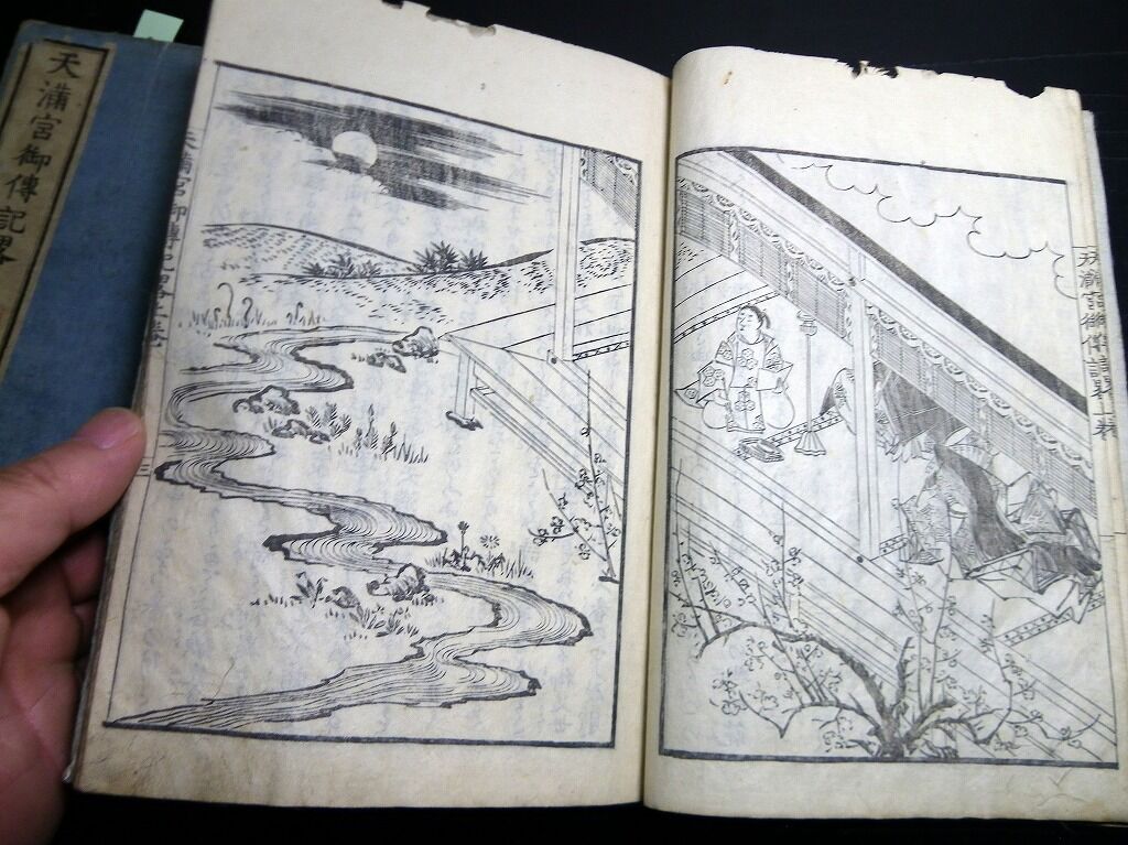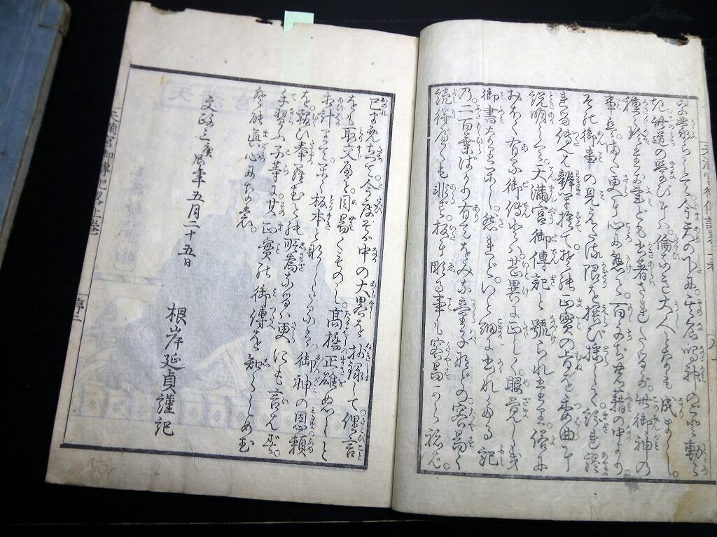 2023年03月17日 和本江戸嘉永8年(1855)序菅原道真「天神一代記図会(天満宮御一代記)」1冊/岡野是重/絵入古書古文書/木版摺り 和本江戸嘉永8年(1855)序菅原道真「天神一代記図会(天満宮御一代記)」1冊/岡野是重/絵入古書古文書/木版摺りです。30丁。18cm×12cm。木版刷り。元題簽傷み欠損あり。奥付あり(刊年の記載なし)。『データ』【書名】 天神一代記図会(天満宮御一代記)【巻冊】 1冊【著者】 岡野是重 編【成立】 嘉永8年(1855)序 タグ :#和本#菅原道真#天神#古書#JAPAN#antiquebook