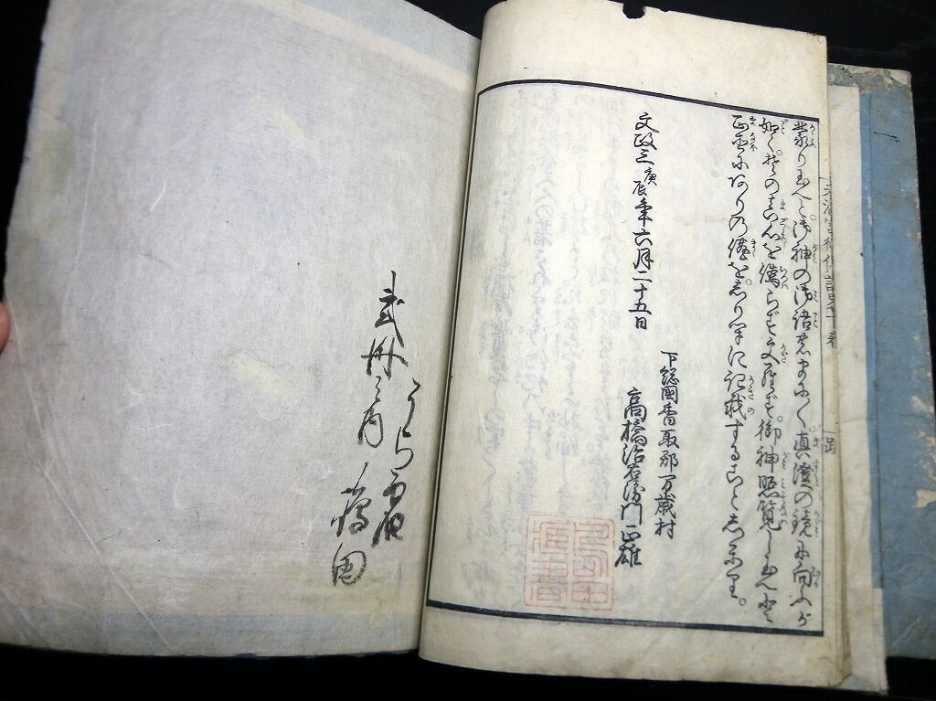 2022年12月02日 和本江戸文政3年(1820)国学神道「天満宮御伝記略」上下2冊揃/平田篤胤/絵入古書古文書/木版摺り/鍬形蕙斎 和本江戸文政3年(1820)国学神道「天満宮御伝記略」上下2冊揃/平田篤胤/絵入古書古文書/木版摺り/鍬形蕙斎です。2冊で2+2+45+1丁。23cm×16cm。木版刷り。元題簽。『データ』【書名】 天満宮御伝記略【巻冊】 上下2冊揃【著者】 平田篤胤【成立】 文政3年(1820) タグ :#和本#菅原道真#天神様#古書#古文書#JAPAN#antiquebooks
