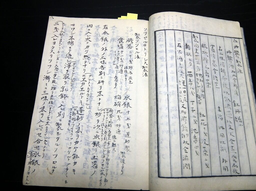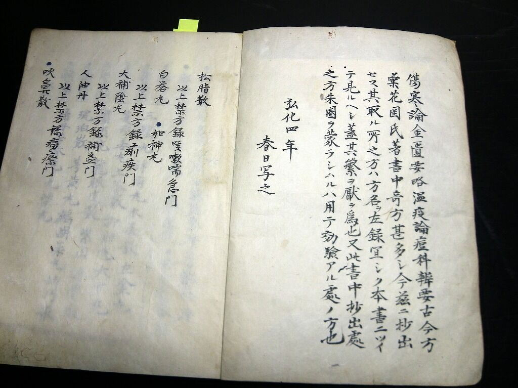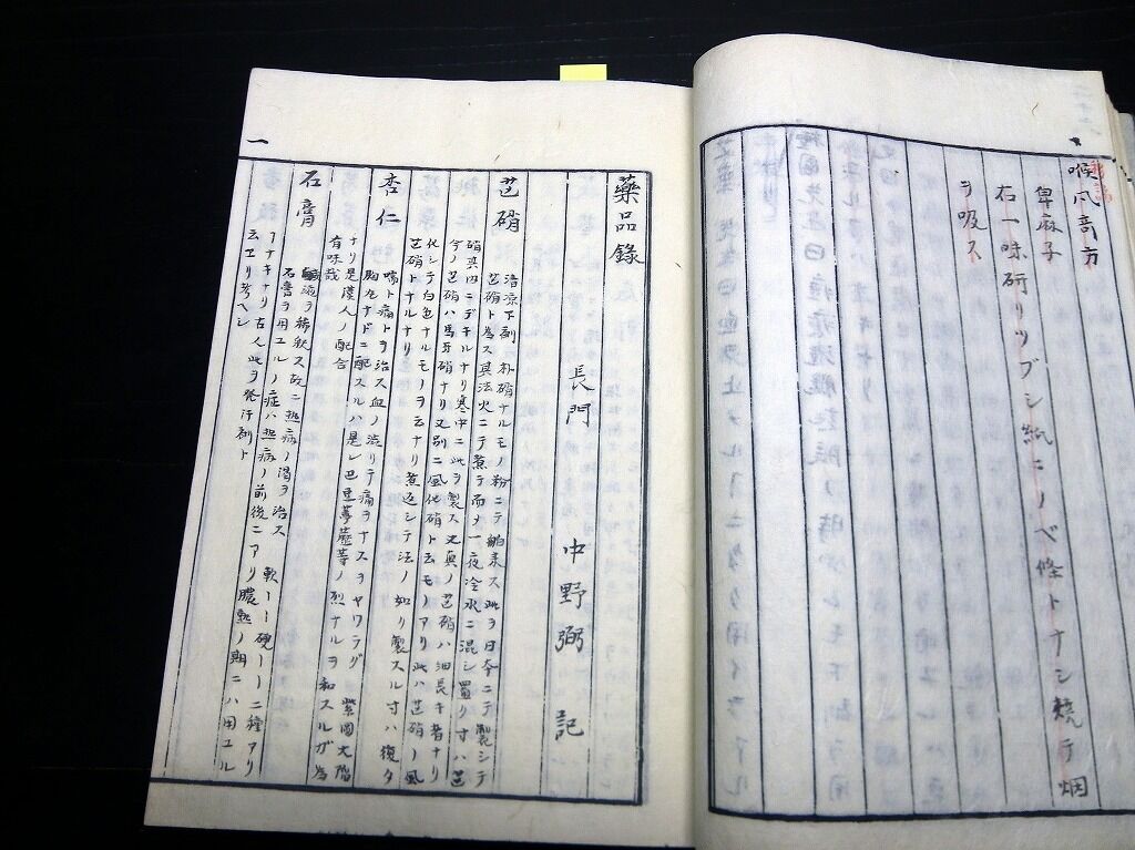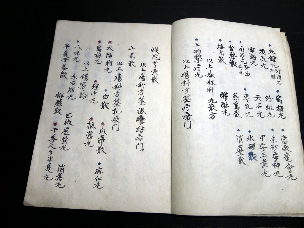 2021年10月13日 和本江戸弘化4年(1847)華岡青洲系統医学薬学写本「日用丸散録」全1冊/古書古文書/手書き 和本江戸弘化4年(1847)華岡青洲系統医学薬学写本「日用丸散録」全1冊/古書古文書/手書きです。57丁。23.5cm×17.5cm。手書き。『データ』【書名】 日用丸散録【巻冊】 全1冊【著者】 春日写【成立】 弘化4年(1847) タグ :#和本#医学#華岡青洲#薬学#古文書