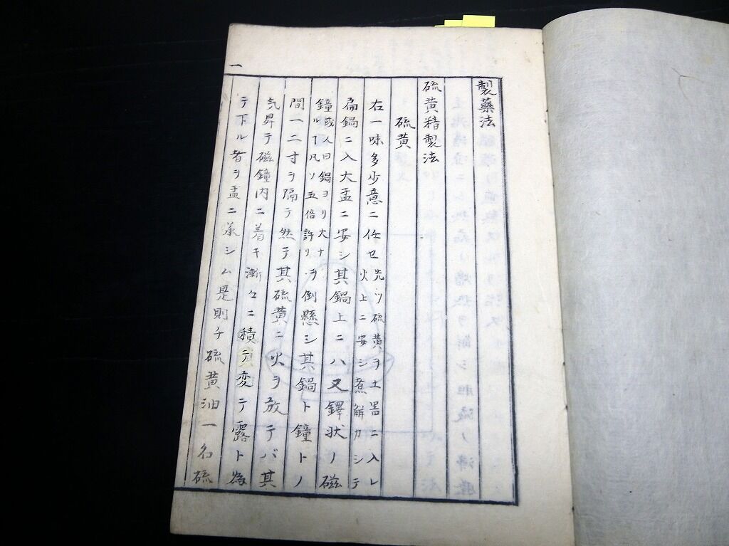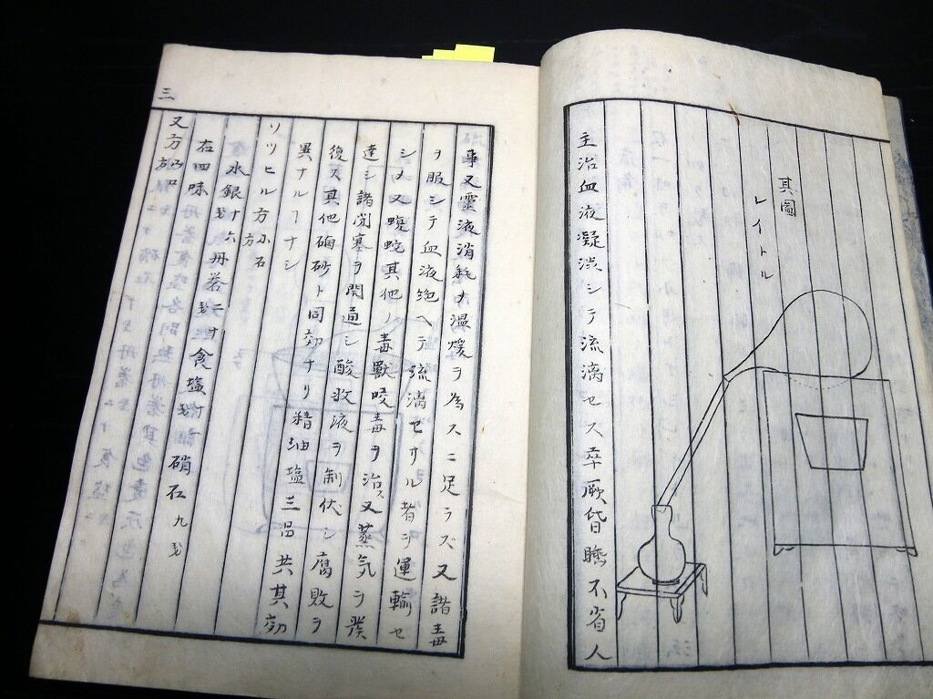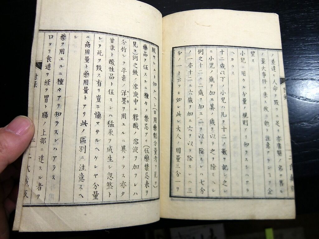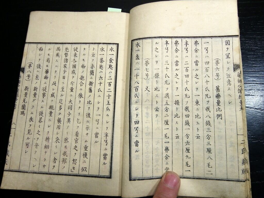 2020年02月04日 和本明治8年(1875)版薬屋薬局「薬舗必読秤量考/付録処方論」全1冊/浜野昇/足立済/古書古文書/木版摺り/西洋医学 和本明治8年(1875)版薬屋薬局「薬舗必読秤量考/付録処方論」全1冊/浜野昇/足立済/古書古文書/木版摺り/西洋医学です。 2+15+3丁。中本。木版刷り。元題簽。見返しあり。奥付あり。 『データ』 【書名】 薬舗必読秤量考/付録処方論 【巻冊】 全1冊 【著者】 浜野昇/足立済 【成立】 明治8年(1875)版 タグ :#和本#医学#薬学