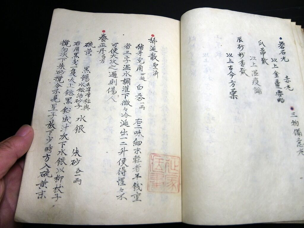 2021年10月07日 和本江戸期蘭学系医学写本「済美堂丸散方」1冊/古書古文書/手書き 和本江戸期蘭学系医学写本「済美堂丸散方」1冊/古書古文書/手書きです。77丁。21cm×14cm。手書き。『データ』【書名】 済美堂丸散方【巻冊】 1冊【成立】 江戸期の写本だと思いますが、正確な年代は不明。 タグ :#和本#医学#薬学#写本#古文書