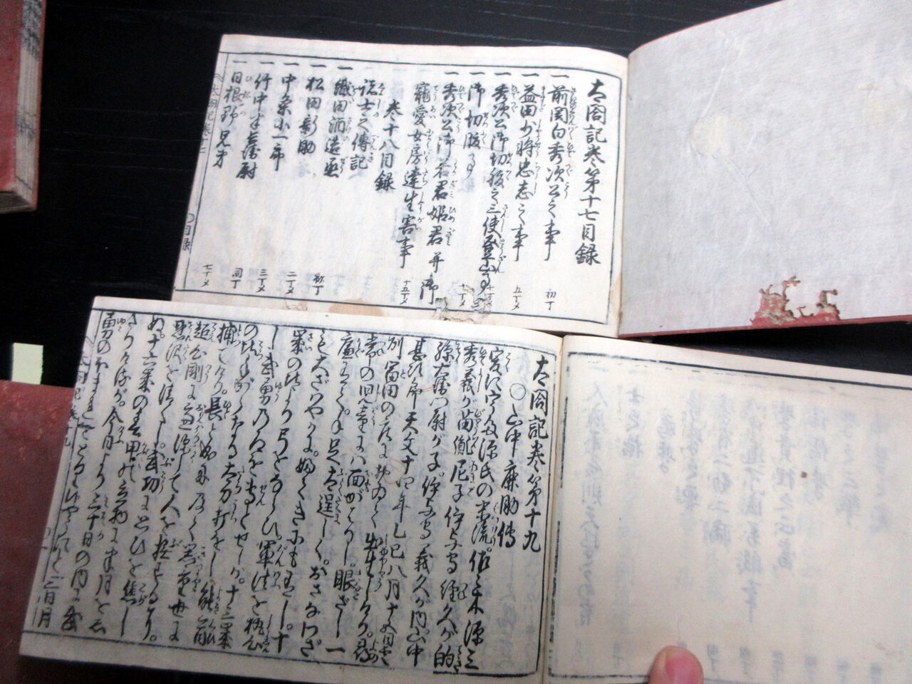 2025年01月10日 和本江戸宝永7年(1710)「太閤記」11冊揃い/出雲寺和泉掾版/絵入古書古文書/木版摺り/朝鮮出兵 和本江戸宝永7年(1710)「太閤記」11冊揃い/出雲寺和泉掾版/絵入古書古文書/木版摺り/朝鮮出兵です。1+6+1+22+14、1+28+29、1+24+20、1+18+17、1+25+31、2+28+39、1+32+32、1+27+29、1+22+19、3+19+32、3+30+13丁。横本(12.5cm×19cm)。木版刷り。元題簽傷み欠損あり。奥付あり。【書名】 太閤記【巻冊】 11冊揃い【著者】 出雲寺和泉掾版【成立】 宝永7年(1710) タグ :#和本#豊臣秀吉#JAPAN#朝鮮出兵#antiquebook#大江戸骨董市#日本の古本屋