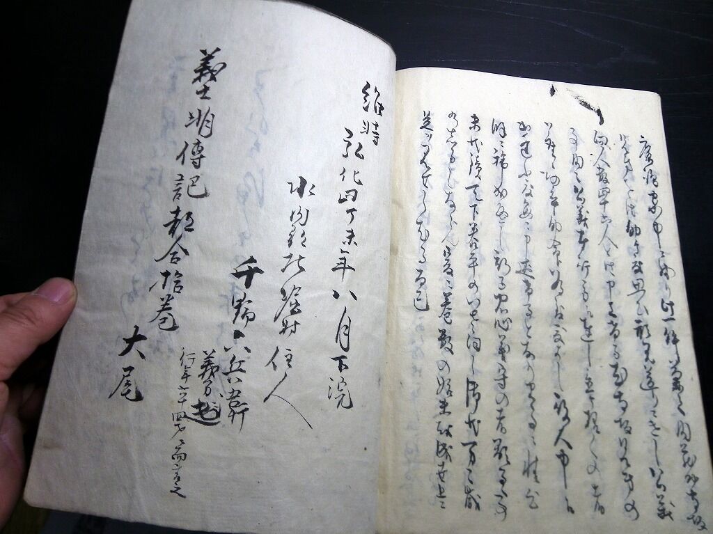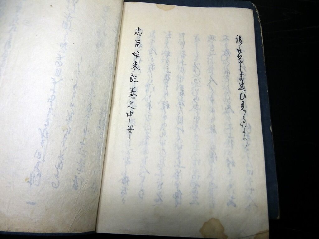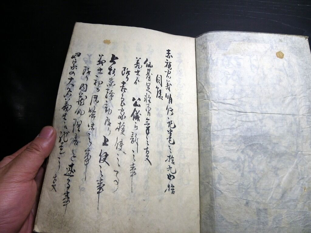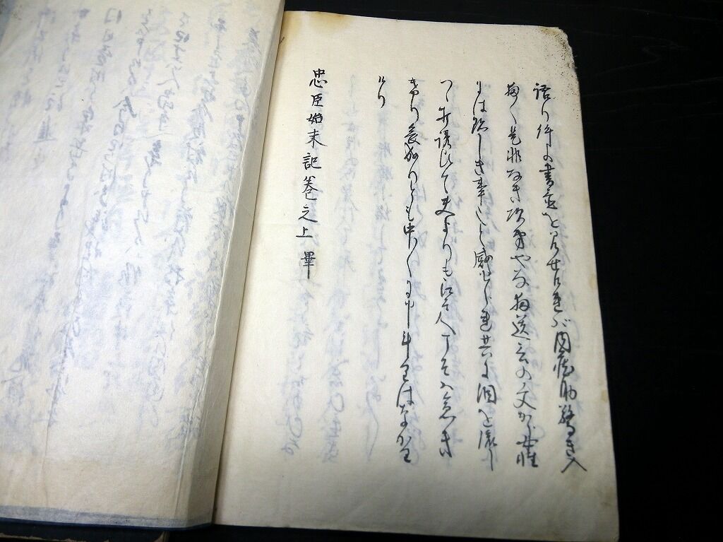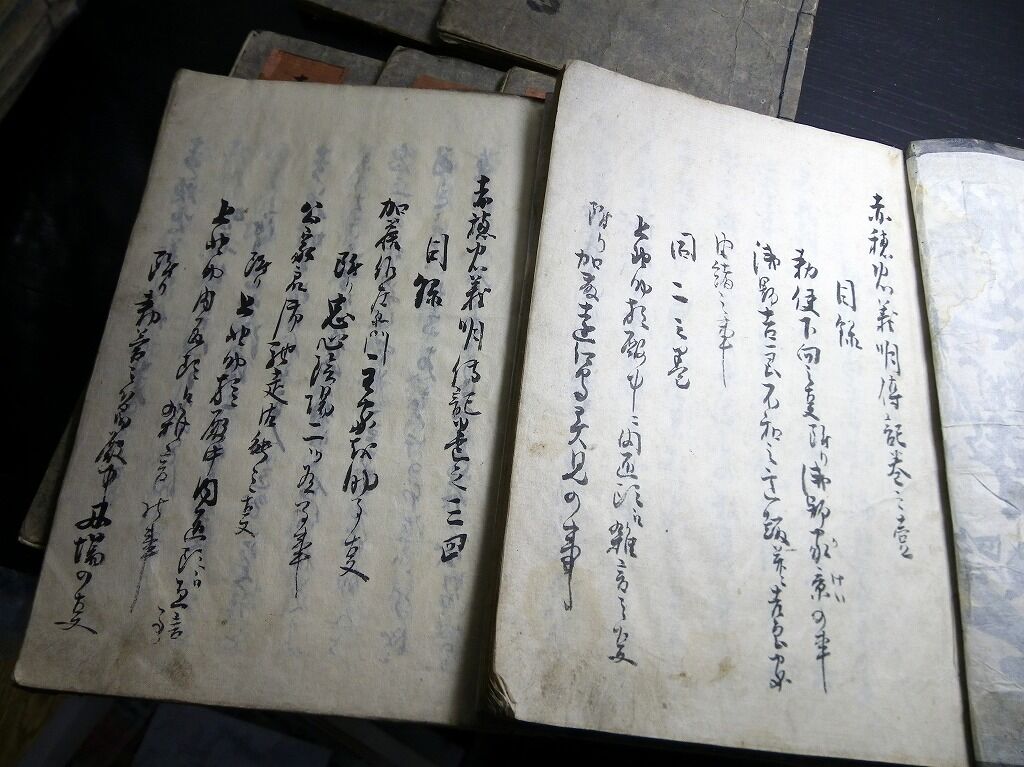 2021年06月16日 和本江戸弘化4年(1847)赤穂浪士忠臣蔵写本「赤穂忠義明伝記」9冊/古書古文書/手書き/信濃国水内郡北堀村 和本江戸弘化4年(1847)赤穂浪士忠臣蔵写本「赤穂忠義明伝記」9冊/古書古文書/手書き/信濃国水内郡北堀村です。37、28、30、30、27、27、21、20、25丁。大本程度。手書き。信濃国水内郡北堀村の記載がある『データ』【書名】 赤穂忠義明伝記【巻冊】 巻1,2で1冊、巻3,4で1冊、巻5,6で1冊、巻7,8で1冊、巻11,12で1冊、巻13,14で1冊、巻15,16で1冊、巻17,18で1冊、巻19,20で1冊の9冊です(全10冊のうち)【成立】 弘化4年(1847)写 タグ :#和本#写本#赤穂浪士#忠臣蔵
