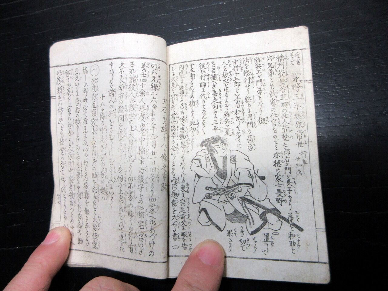 2025年07月24日 和本江戸期赤穂浪士「忠臣蔵実録銘伝」1~5合1冊/古書古文書/木版摺り/伝記 和本江戸期赤穂浪士「忠臣蔵実録銘伝」1~5合1冊/古書古文書/木版摺り/伝記です。4+4+4+4+4丁。19.5cm×12cm。木版刷り。【書名】 忠臣蔵実録銘伝【巻冊】 1~5合1冊【成立】 幕末期ぐらい タグ :#和本#忠臣蔵#赤穂浪士#古書#古文書#JAPAN#Antiquebooks#日本の古本屋#大江戸骨董市