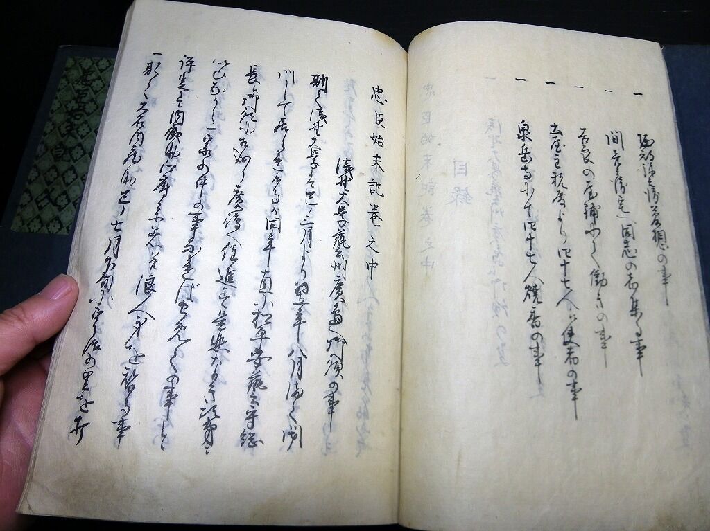 2023年05月09日 和本江戸期忠臣蔵赤穂浪士「忠臣始末記」天地人3冊揃い/古書古文書/手書き 和本江戸期忠臣蔵赤穂浪士「忠臣始末記」天地人3冊揃い/古書古文書/手書きです。34、33、23丁。28cm×19.5cm。手書き。『データ』【書名】 忠臣始末記【巻冊】 天地人3冊揃い【成立】 江戸期の写本だと思いますが、正確な年代は不明。 タグ :#和本#写本#古文書#忠臣蔵#赤穂浪士#JAPAN#antiquebooks
