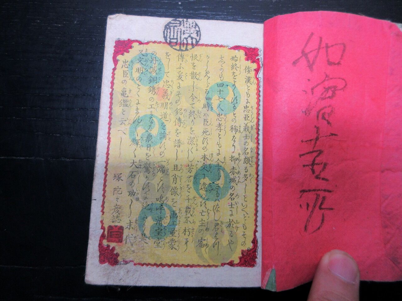 2025年07月10日 和本江戸弘化5年(1848)赤穂浪士忠臣蔵「誠忠義臣略伝」全1冊/緑亭川柳/一陽斎豊国/絵入古書古文書/木版摺り 和本江戸弘化5年(1848)赤穂浪士忠臣蔵「誠忠義臣略伝」全1冊/緑亭川柳/一陽斎豊国/絵入古書古文書/木版摺りです。27丁。18cm×12cm。木版刷り。見返しあり。奥付あり。【書名】 誠忠義臣略伝【巻冊】 全1冊【著者】 緑亭川柳 編 一陽斎豊国 画【成立】 弘化5年(1848) タグ :#和本#忠臣蔵#赤穂浪士#絵本#JAPAN#Antiquebooks#日本の古本屋#大江戸骨董市