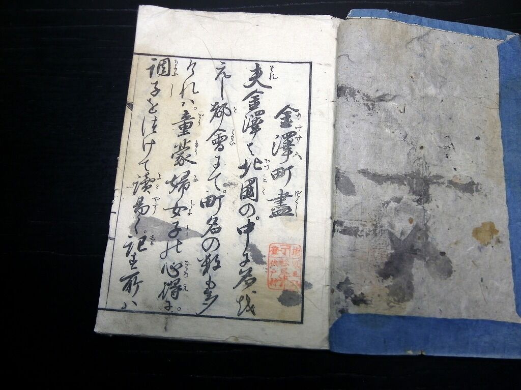 2020年09月25日 和本明治期地方版往来物「金沢町尽」1冊/乾子述/古書古文書/木版摺り 和本明治期地方版往来物「金沢町尽」1冊/乾子述/古書古文書/木版摺りです。24丁。20cm×14cm。木版刷り。『データ』【書名】 金沢町尽【巻冊】 1冊【著者】 乾子述【成立】 明治期 タグ :#和本#往来物#金沢