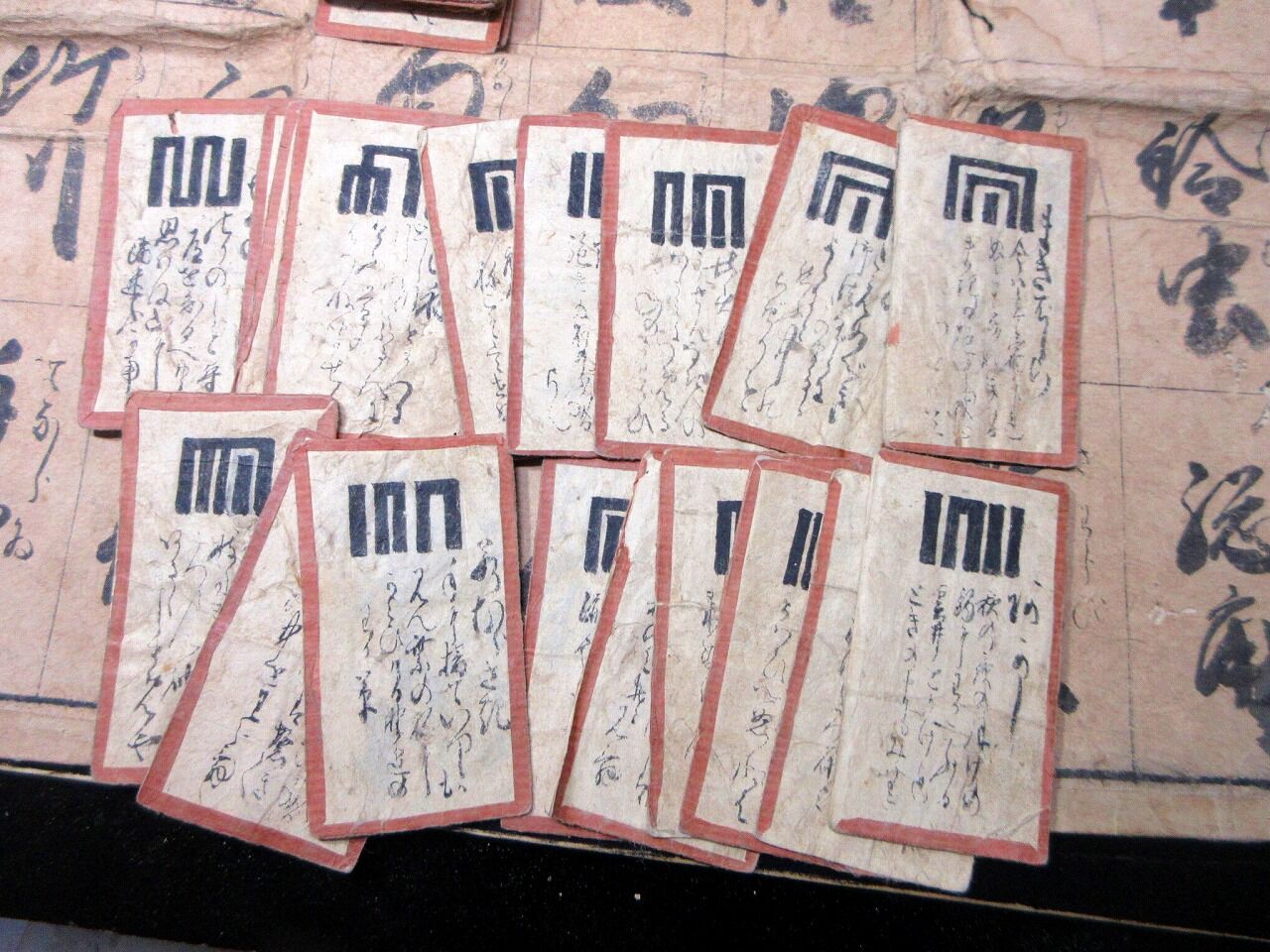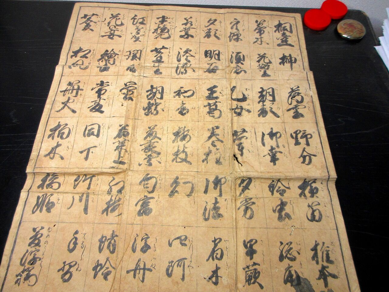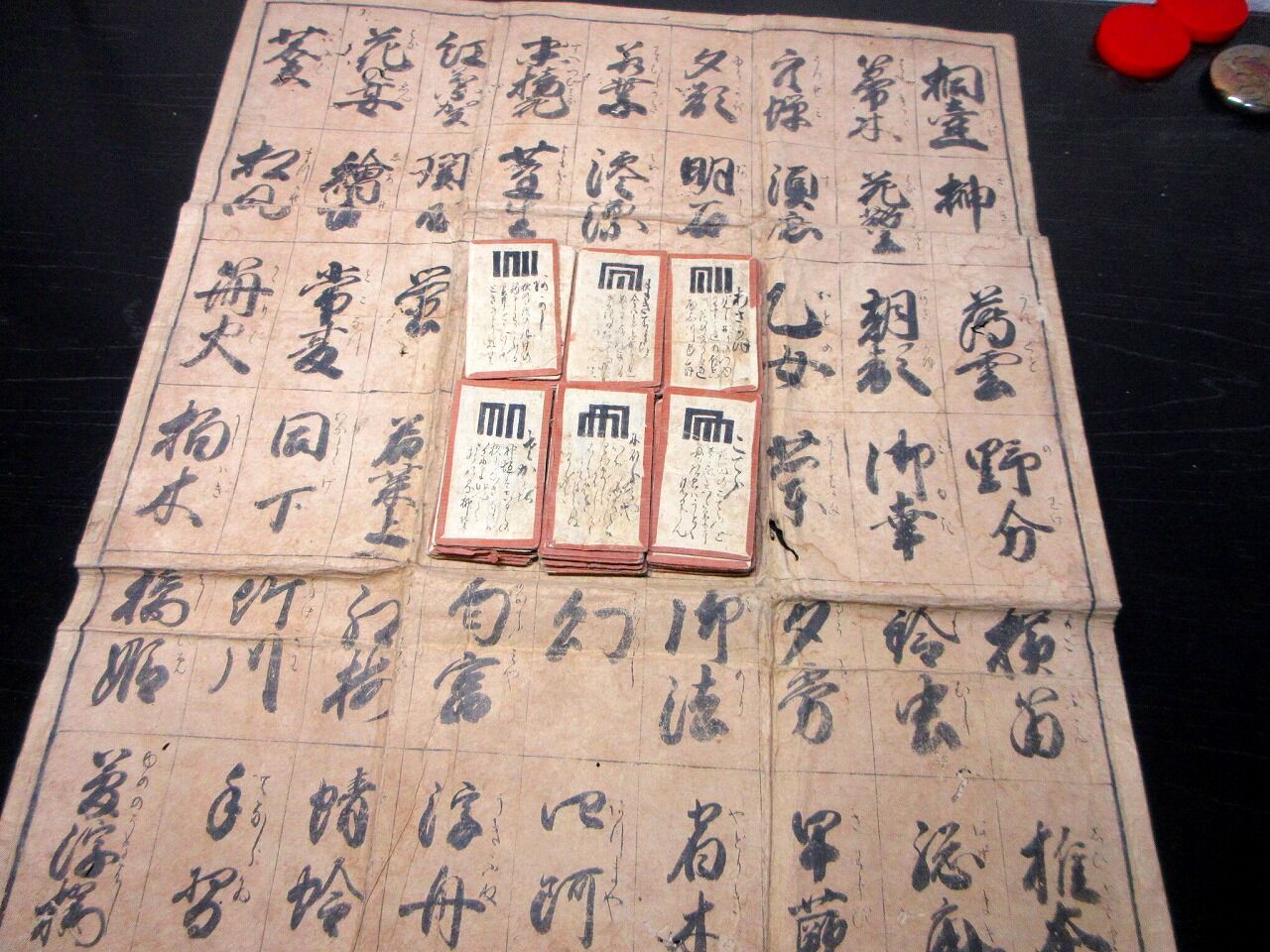 2025年12月16日 幕末~明治期「源氏物語札合わせ遊び盤(仮題)」1セット(カード54枚と盤1点)/古書古文書/手書き 幕末~明治期「源氏物語札合わせ遊び盤(仮題)」1セット(カード54枚と盤1点)/古書古文書/手書きです。盤が広げると55cm×46cm。手書き。【書名】 源氏物語札合わせ遊び盤(仮題)【巻冊】 1セット(カード54枚と盤1点)【成立】 幕末~明治期 タグ :#カード#ゲーム#かるた#源氏#源氏物語#JAPAN#Antiquebooks#日本の古本屋#大江戸骨董市