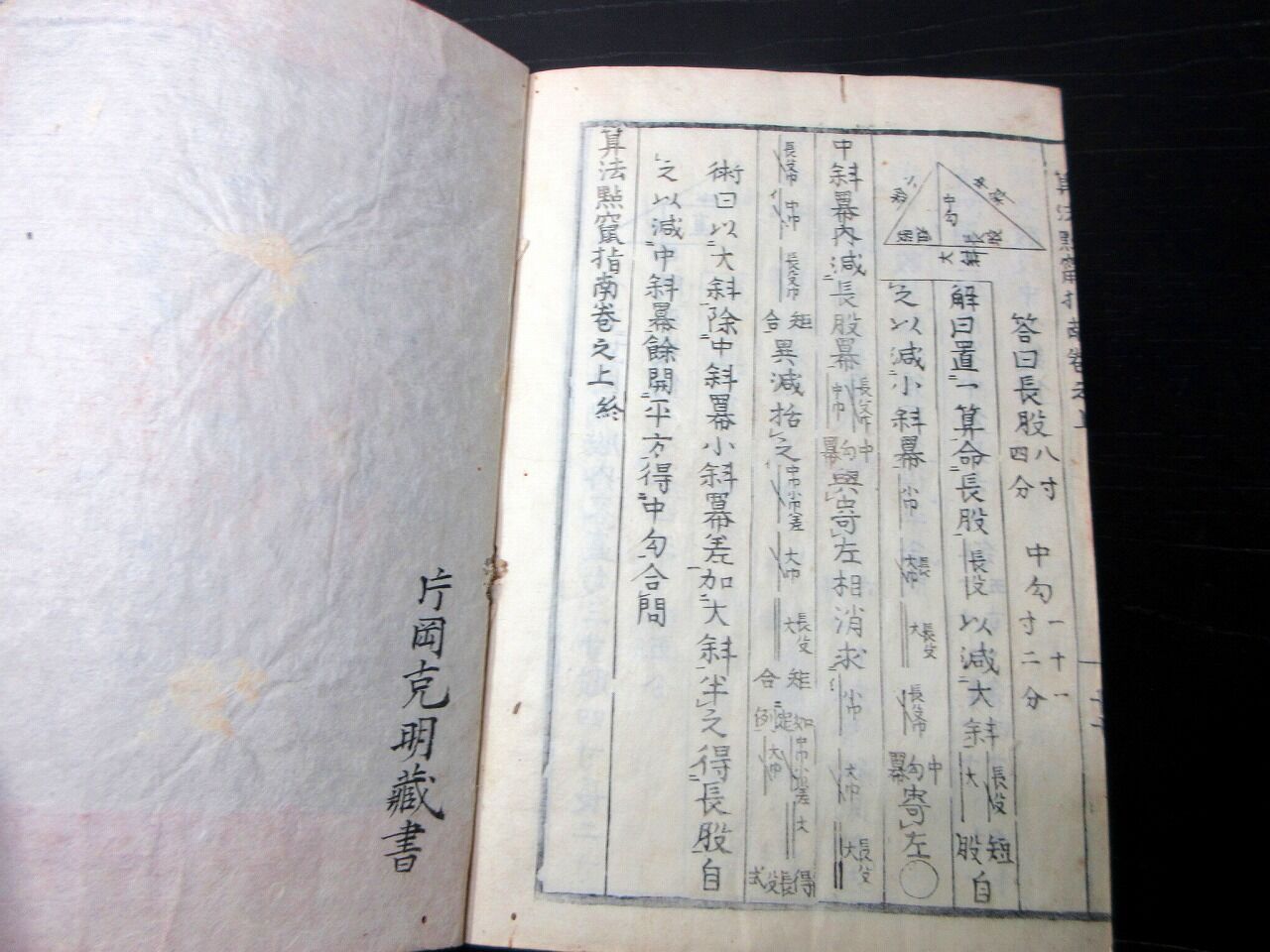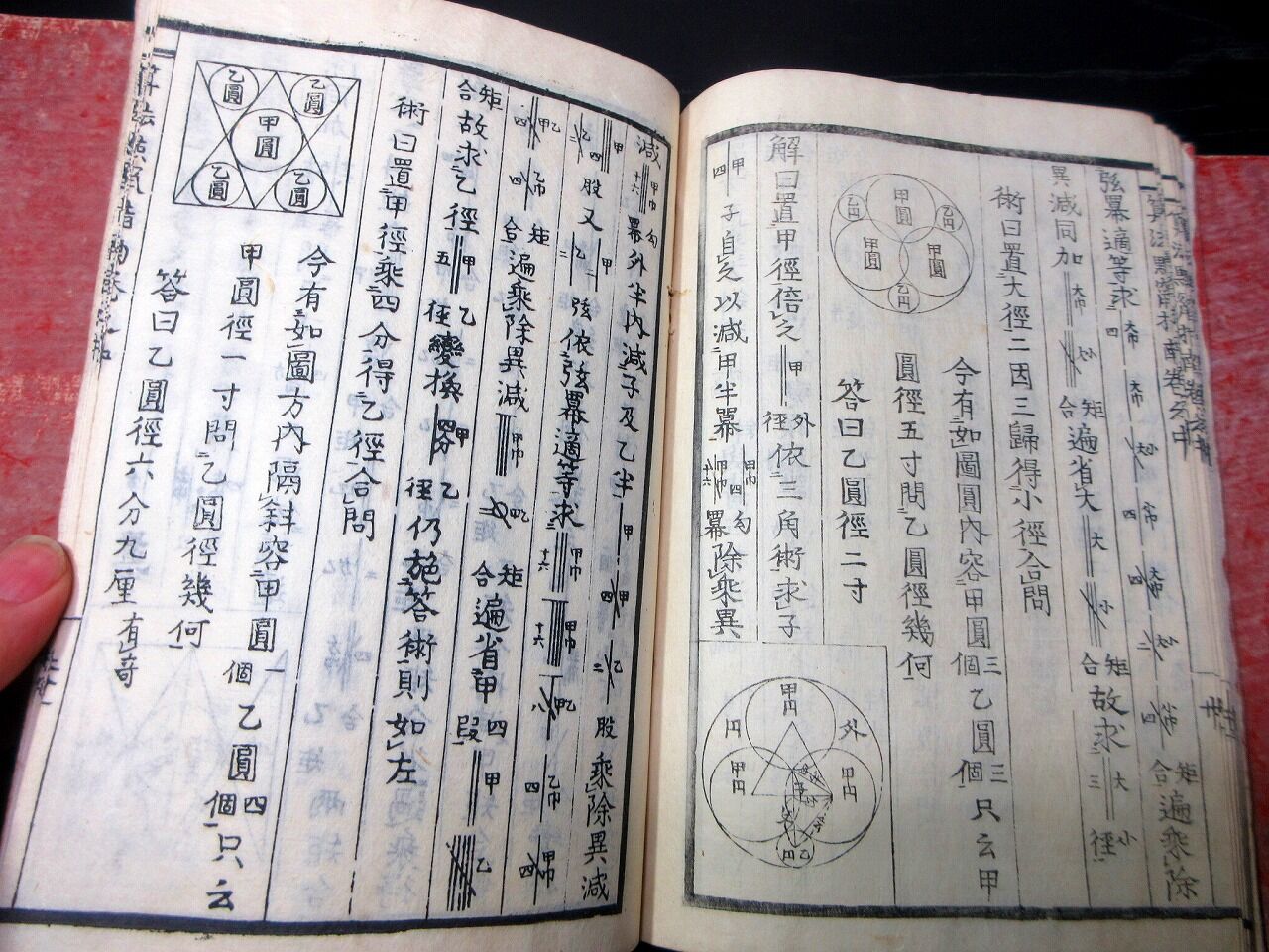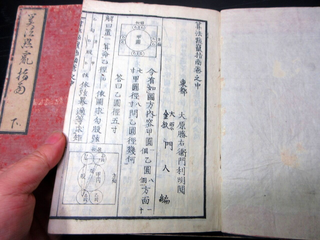 2026年01月01日 和本江戸文化7年(1810)和算「算法点竄指南」上中下3冊揃い/大原利明/算木/算数/数学/古書古文書/木版摺り 和本江戸文化7年(1810)和算「算法点竄指南」上中下3冊揃い/大原利明/算木/算数/数学/古書古文書/木版摺りです。5+11+17、27、31+2+1丁。22.5cm×16cm。木版刷り。元題簽。見返しあり。奥付あり。【書名】 算法点竄指南【巻冊】 上中下3冊揃い【著者】 大原利明 閲 大原金杉門人 編【成立】 文化7年(1810) タグ :#和本#算数#数学#和算#JAPAN#Antiquebooks#日本の古本屋#大江戸骨董市#算木