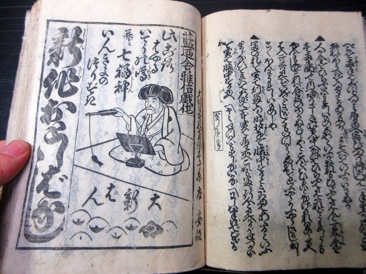 2026年01月07日 和本江戸期落語咄本「大寄噺の尻馬」初編1冊/長谷川貞信/絵入古書古文書/木版摺り 和本江戸期落語咄本「大寄噺の尻馬」初編1冊/長谷川貞信/絵入古書古文書/木版摺りです。57丁。22cm×16cm。木版刷り。見返しあり。【書名】 大寄噺の尻馬【巻冊】 初編、1冊です【著者】 長谷川貞信 画【成立】 江戸後期 タグ :#和本#落語#笑い#風刺#JAPAN#Antiquebooks#日本の古本屋#大江戸骨董市