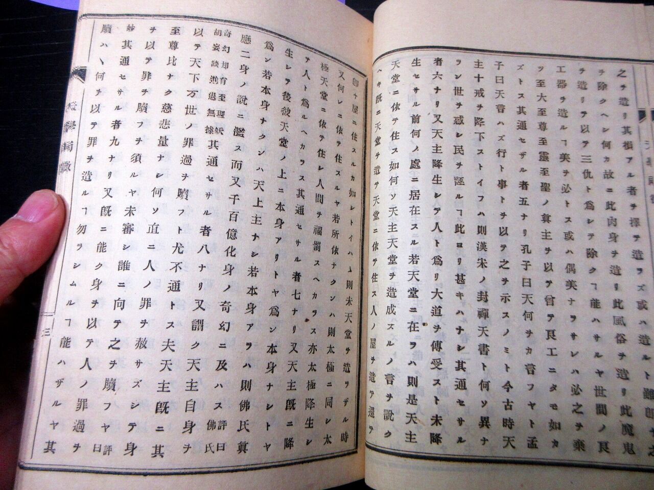 2026年01月03日 和本明治11年(1878)キリスト教批判「天学両徴(天学初徴/天学再徴)」全1冊/赤松連城/古書/和紙に活版 和本明治11年(1878)キリスト教批判「天学両徴(天学初徴/天学再徴)」全1冊/赤松連城/古書/和紙に活版です。1+21丁。22.5cm×15cm。和紙に活版。元題簽。見返しあり。奥付あり。【書名】 天学両徴(天学初徴/天学再徴)【巻冊】 全1冊【著者】 赤松連城【成立】 明治11年(1878) タグ :#和本#古書#活版#キリスト教#仏教#JAPAN#Antiquebooks#日本の古本屋#大江戸骨董市