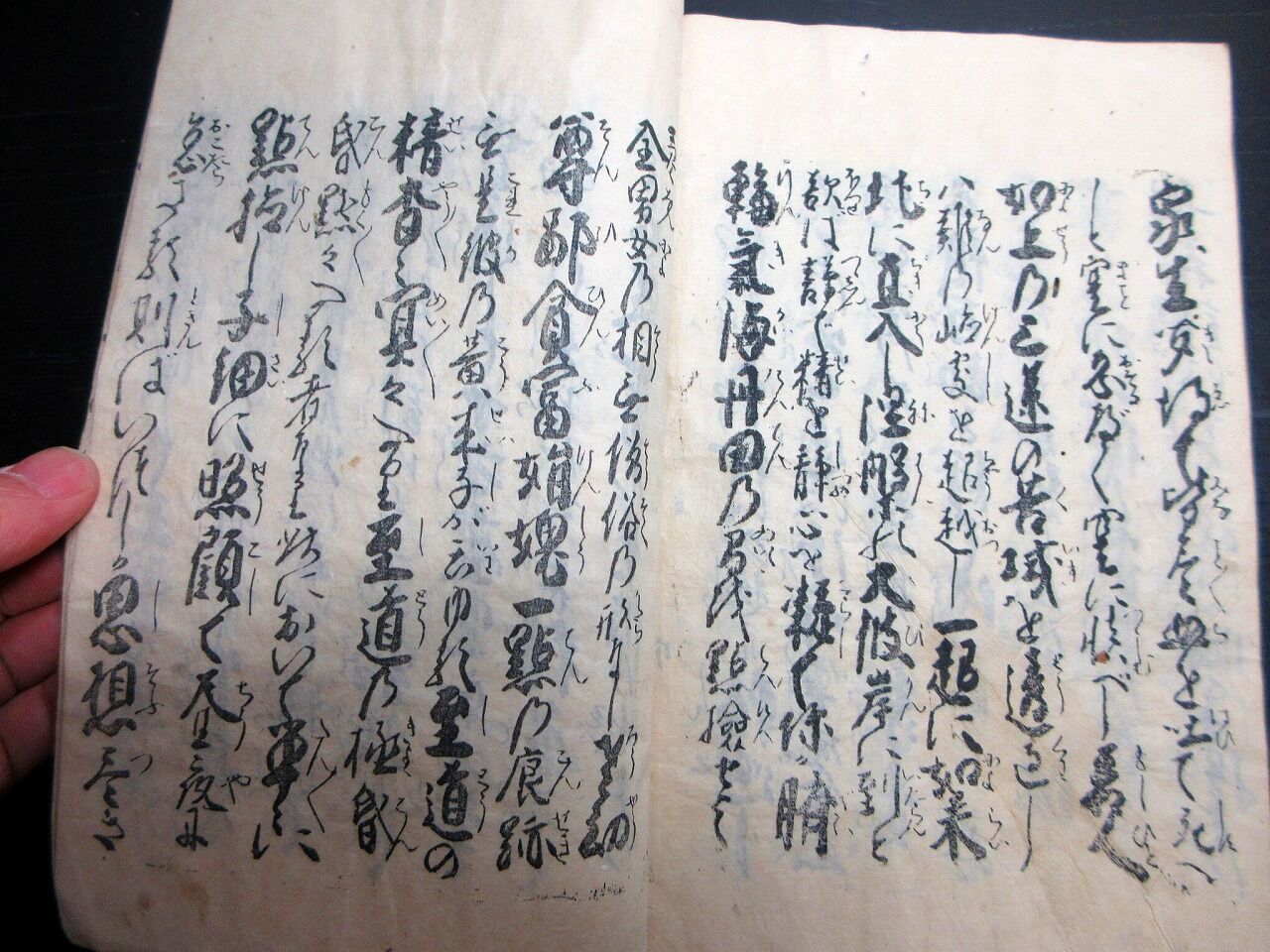 2025年01月25日 和本江戸安政5年(1858)仏教日蓮宗「和訓法華経要品」全1冊/大光山善立寺日運聖人校正/古書古文書/木版摺り 和本江戸安政5年(1858)仏教日蓮宗「和訓法華経要品」全1冊/大光山善立寺日運聖人校正/古書古文書/木版摺りです。2+1+69丁。19cm×12.5cm。木版刷り。元題簽。見返しあり。奥付あり。【書名】 和訓法華経要品【巻冊】 全1冊【著者】 大光山善立寺日運聖人校正【成立】 安政5年(1858) タグ :#和本#仏教#JAPAN#antiquebook#日本の古本屋#大江戸骨董市